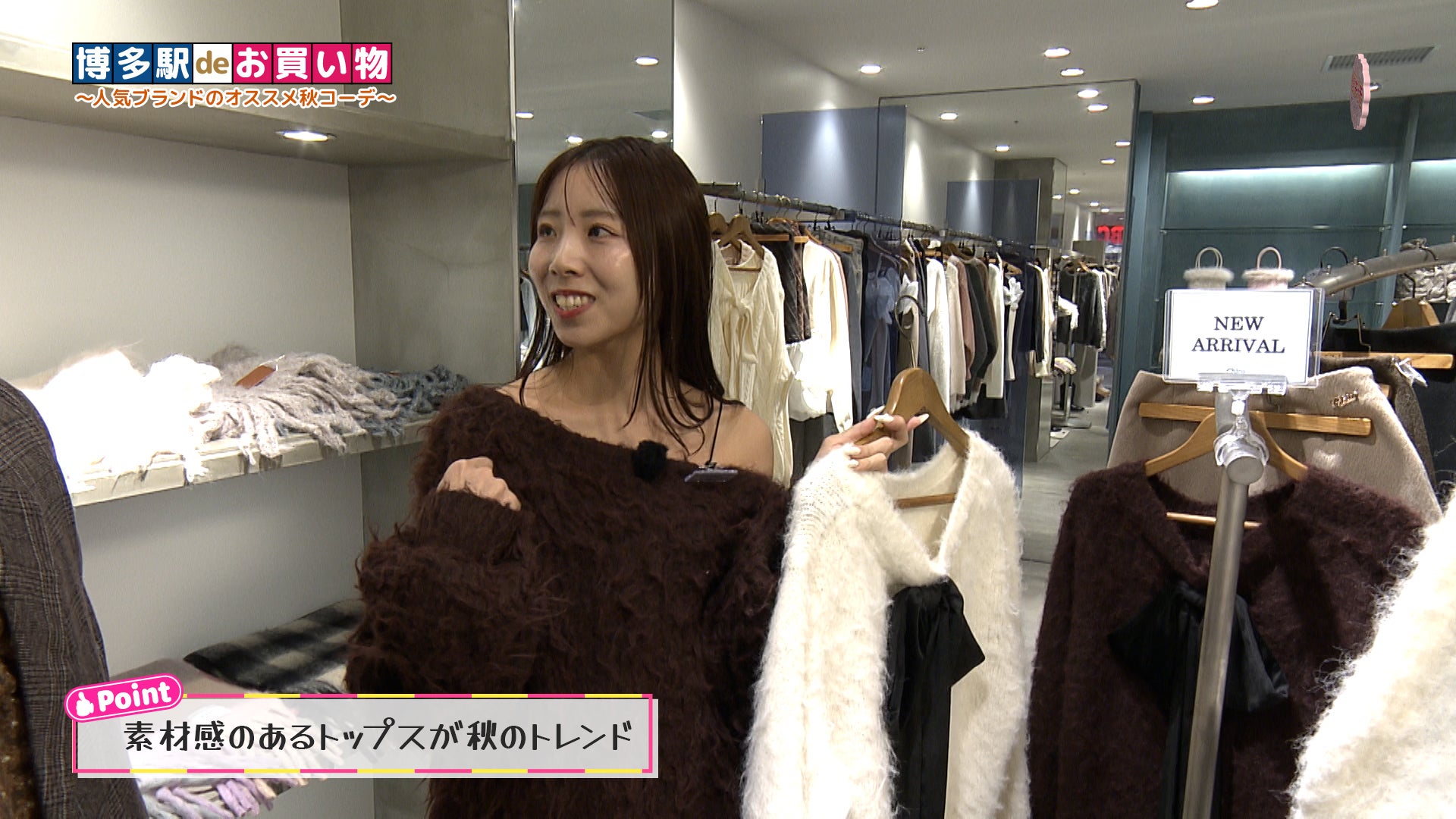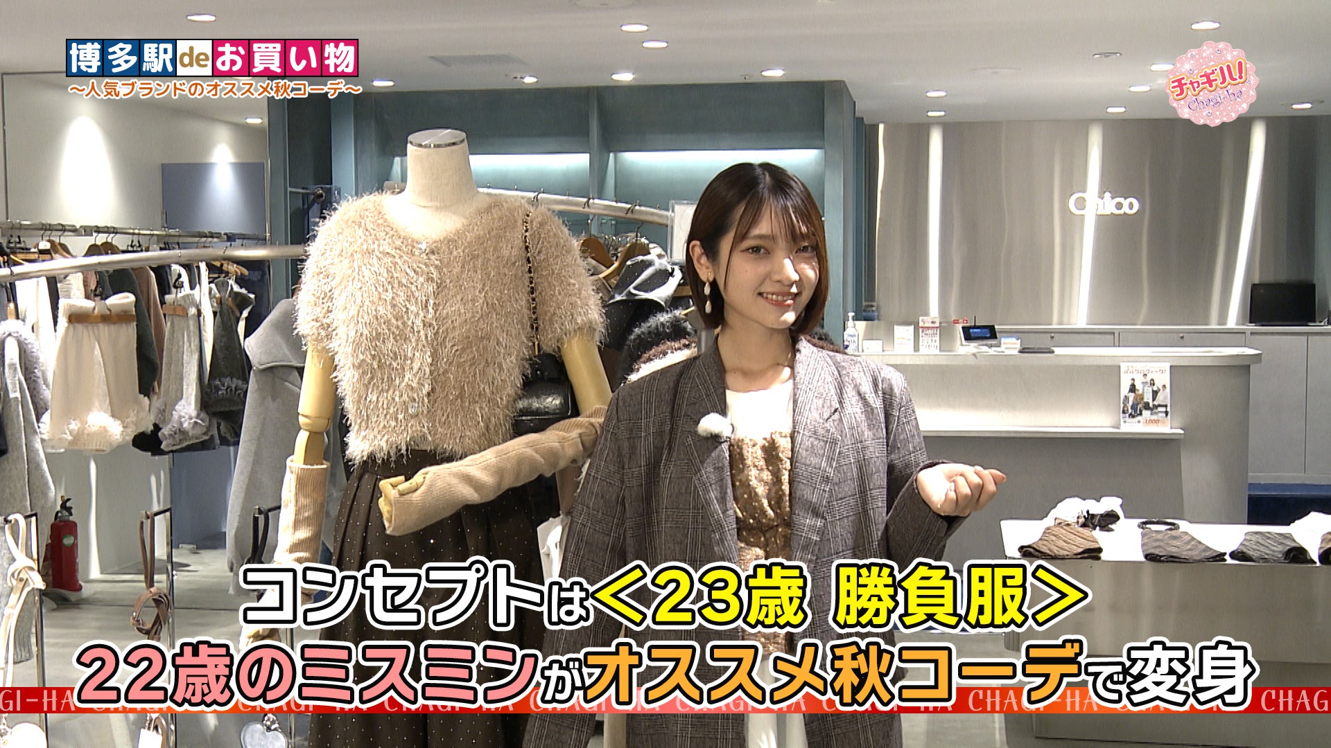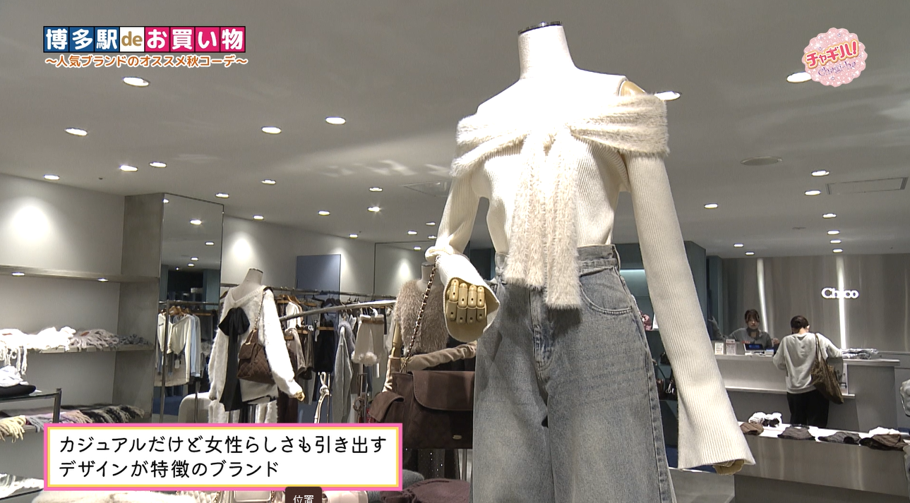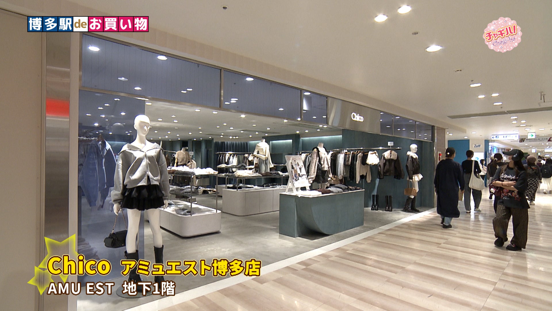 博多駅deお買い物!続いて2人が訪れたのは、AMU EST地下1階にある「Chico アミュエスト博多店」です。カジュアルだけど、女性らしさも引き出すデザインが特徴のブランドです。