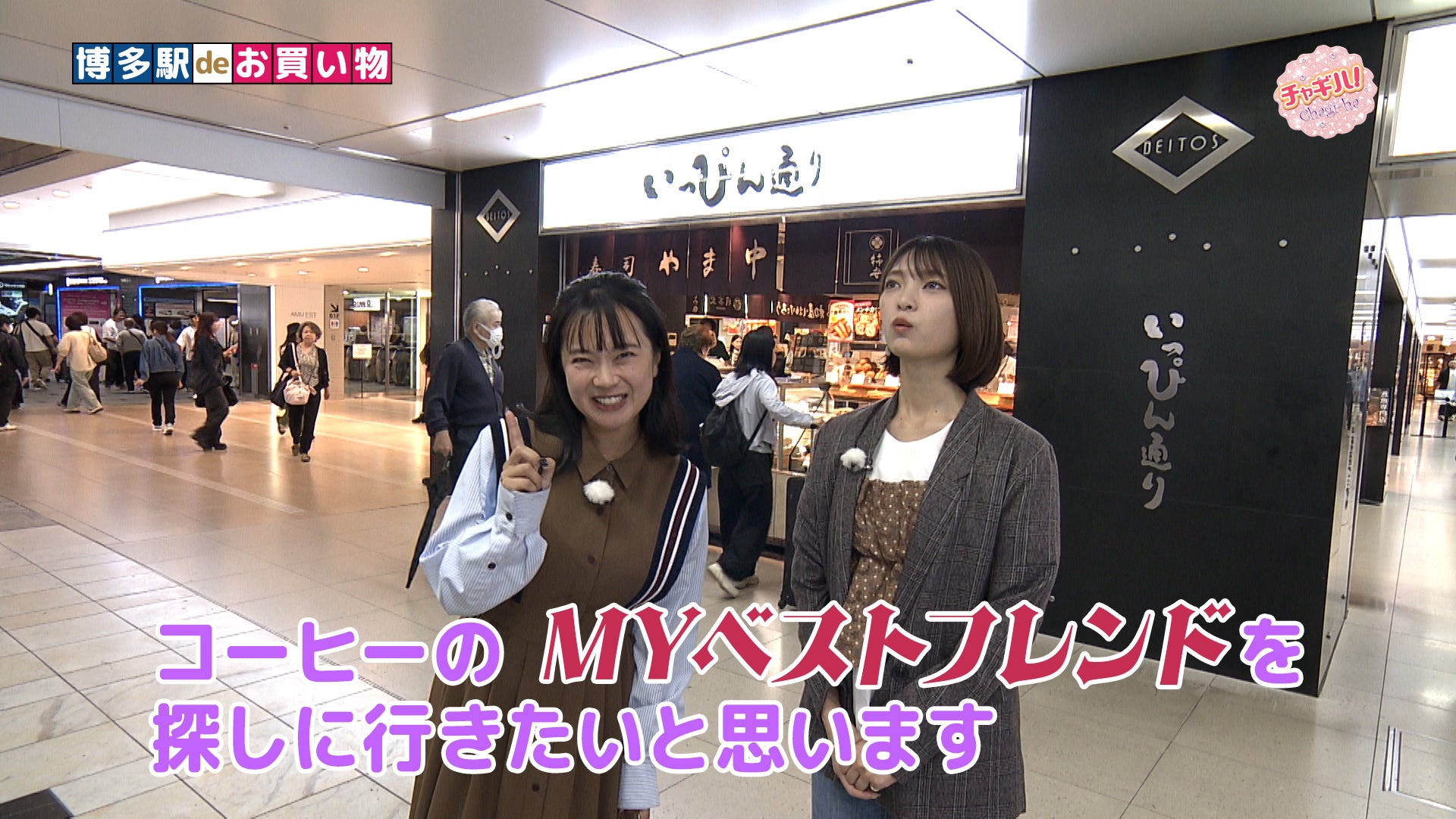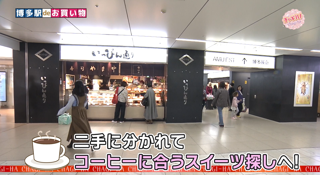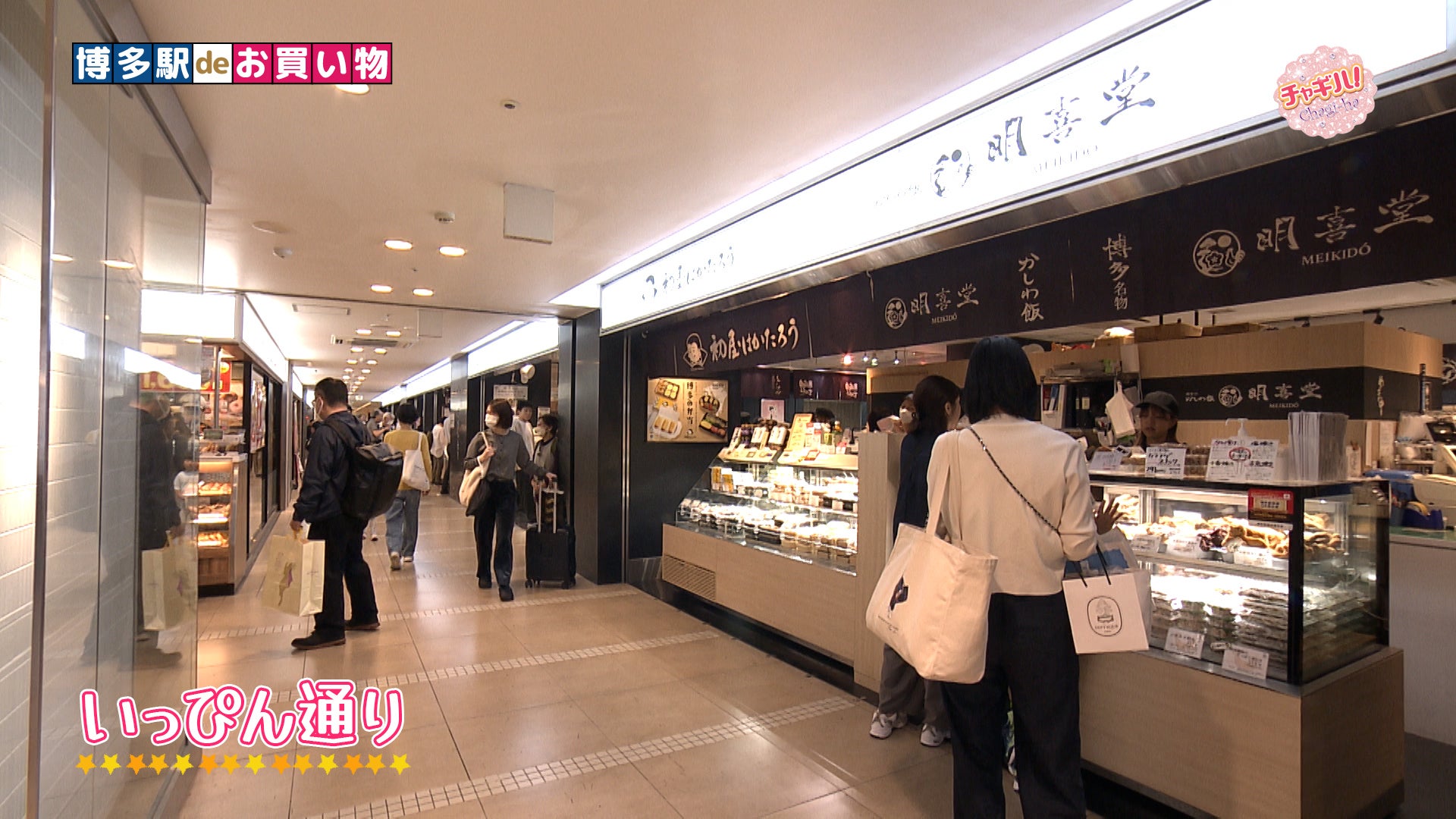 博多駅deお買い物。JR博多駅構内の「いっぴん通り」には、手土産にぴったりなスイーツからお弁当、お総菜まで、様々なお店が並びます。