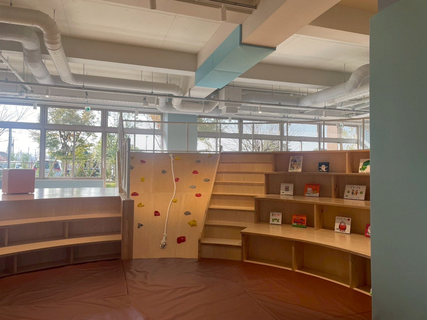 初日に向かったのは、その新しい町の図書館【築きのもり 築上町図書館】です。かの有名な建築家、隈研吾氏がデザインを手がけた、木がふんだんに使われた温かみのある建物。1階は児童スペースで、中央部はは滑り台やボルダリングが備え付けられていて、子供たちが遊びながら本に触れ合える作りになっています。2階には予約制のサイレントルーム、3階には展示スペースができる予定で、大人も子供も楽しめる充実した施設になりそうです。