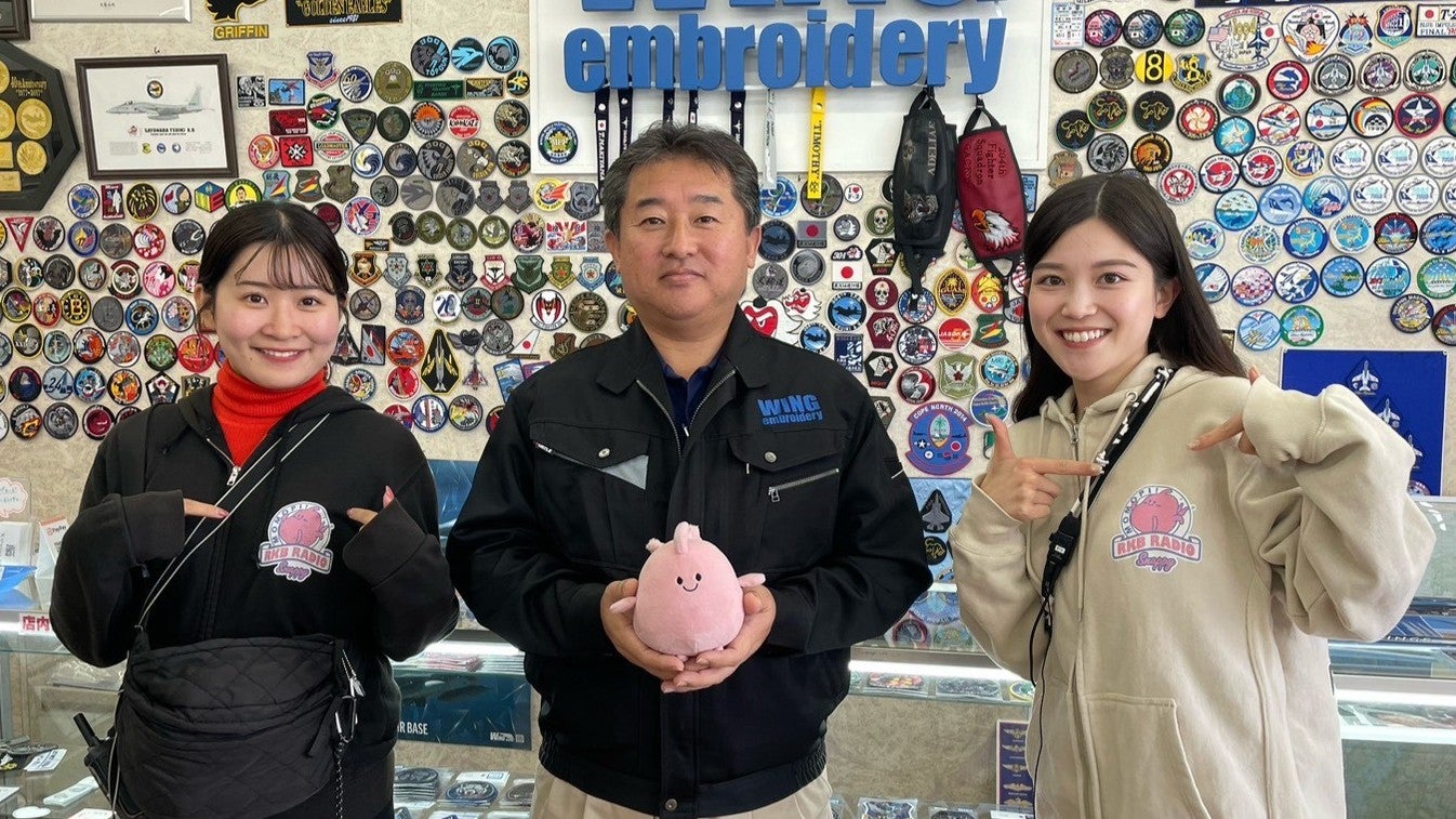 ウィング刺繍(創業16年):航空自衛隊のパイロットスーツやジャンバー用のワッペンを製造・販売。ブルーインパルスのワッペンも作っているそうです。今は航空祭で販売する1000個のワッペン製作で大忙し。お店の中はさまざまなワッペンで埋め尽くされていました。