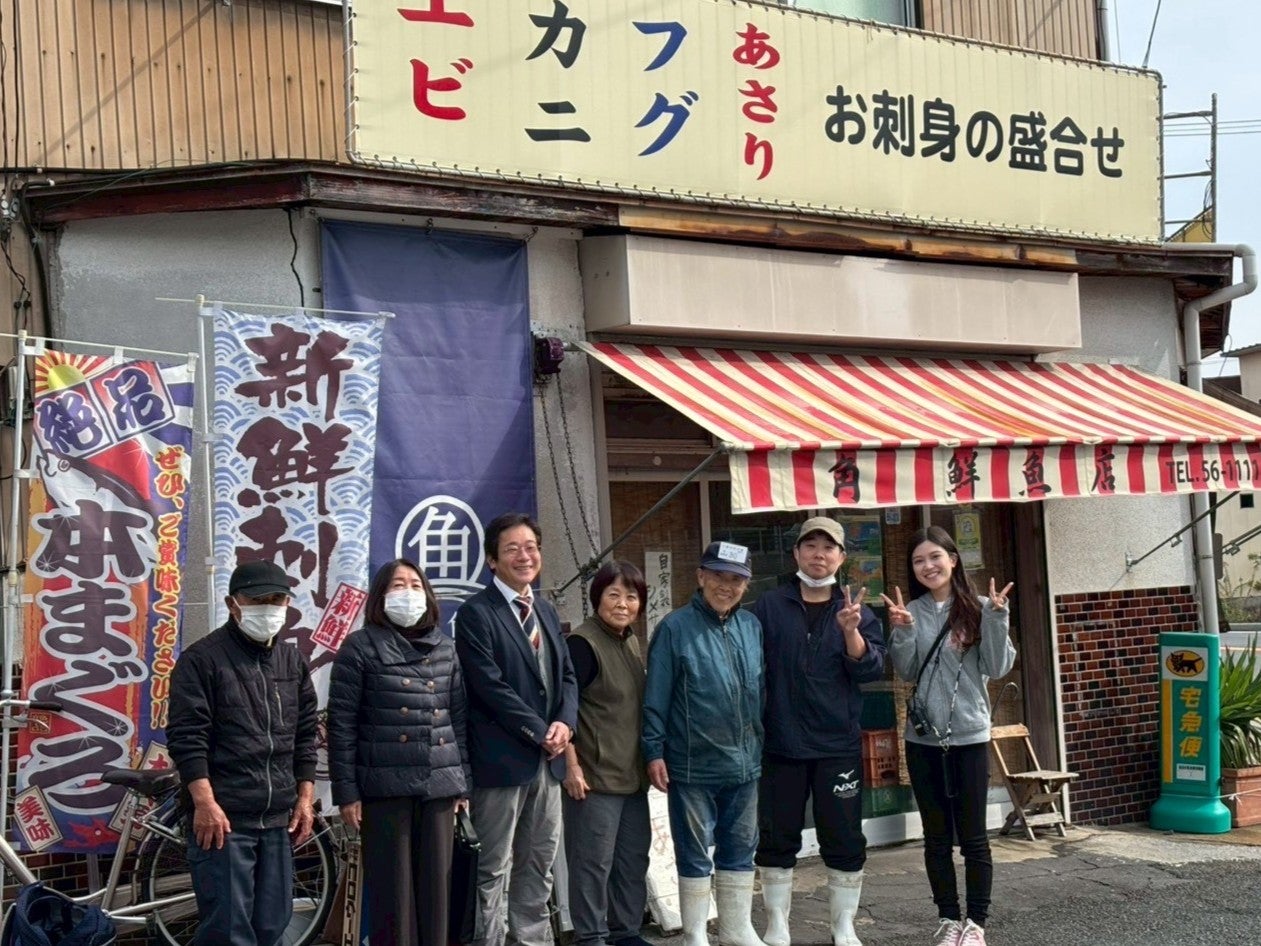 角鮮魚店(創業65年以上):大きないけすが2つある鮮魚店。昔はリアカーで行商することでお客さんを増やしていったそうです。4代目が切り盛りする今では魚を調理したお惣菜も販売しています。