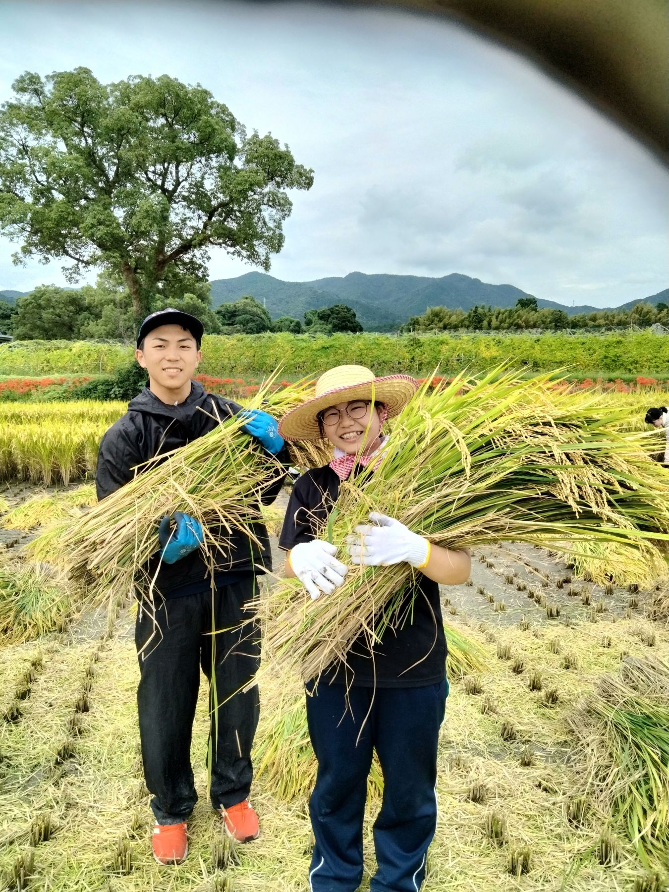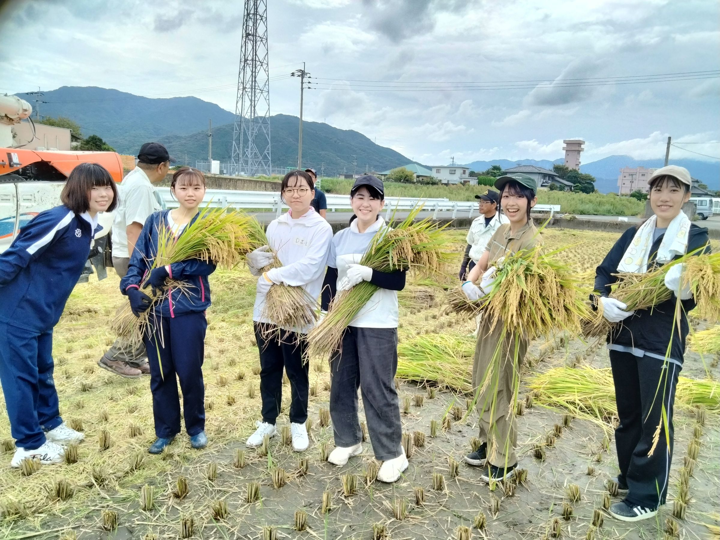 それから誰よりも稲刈りが早い男子学生。