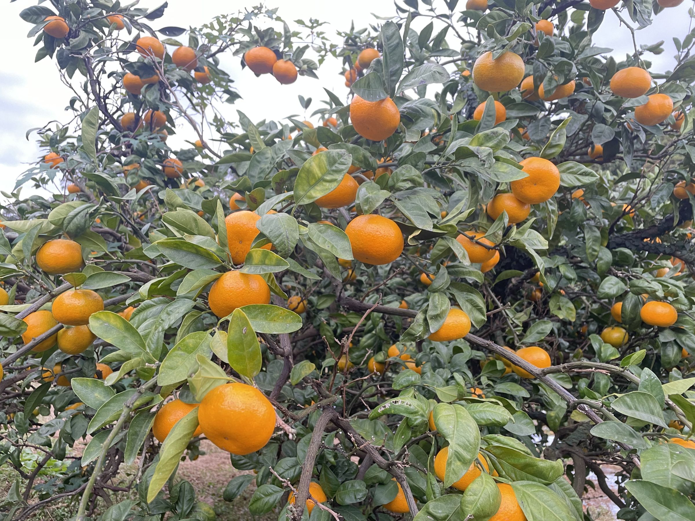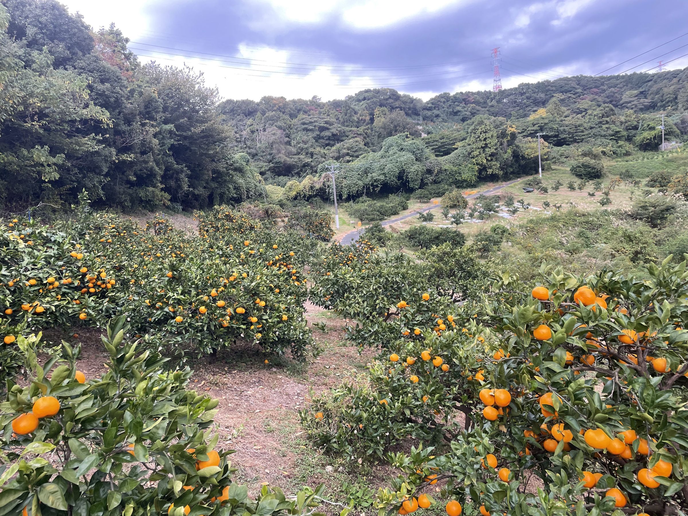 背丈150センチぐらいのみかんの木々にはオレンジ色に色づいた早生みかんがポコポコ実っていて収穫を今か今かと待っていました!