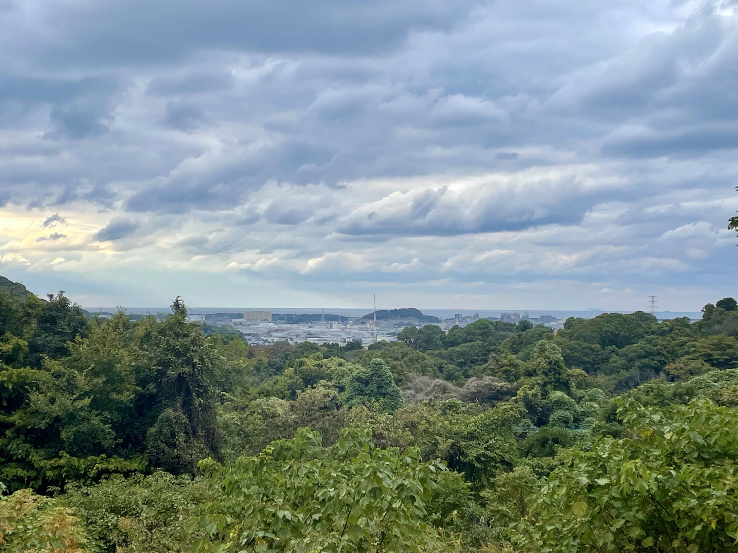 小高い山あいに安部さんのみかん畑があり、その山からは古賀市街地や玄界灘も見えました!