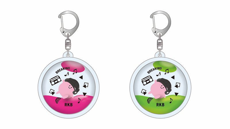 RKBのマスコットキャラクター「ももピッ!」が、ヘッドホンとニット帽姿でブレイキンを楽しむドーム型キーホルダーです。優しく揺らすと、ヘッドスピンやウィンドミルさながらのパワームーブを披露します。