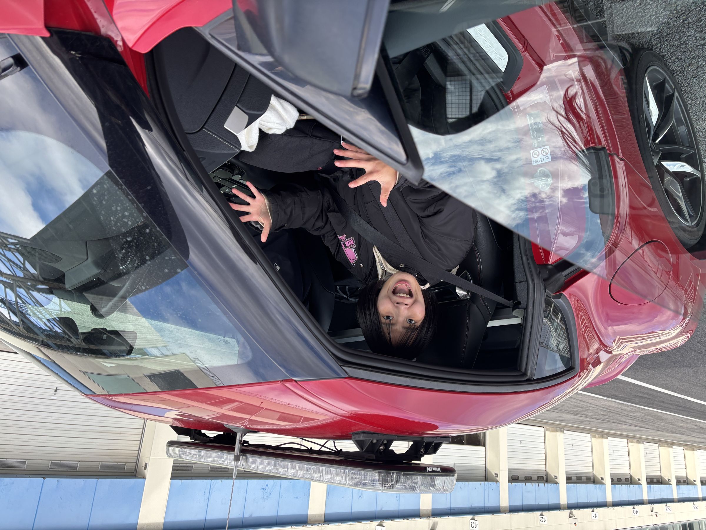 そして、ついにサーキットへ! 地面には実際のレースで使われるスタート位置の印や信号があり、ワクワクが止まりません! この日は特別に、スナッピー川原彩音が助手席に乗せてもらい、サーキットを一周体験しました。