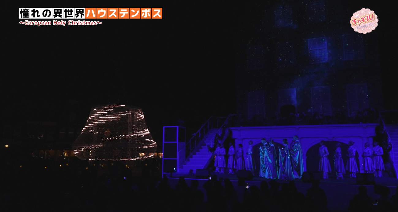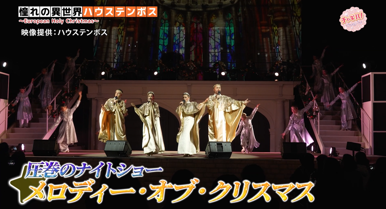 18時15分、クリスマスナイトの一大イベント「メロディーオブクリスマス」が始まります。聖歌隊の美しくも力強い歌声とともにクリスマスツリーが点灯!会場全体が感動と興奮に包まれる瞬間です。