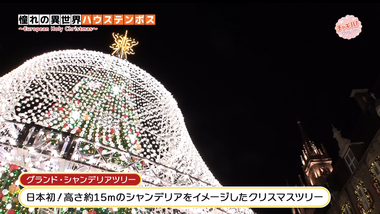 長崎県佐世保市のテーマパーク「ハウステンボス」では、1月5日まで「ヨーロピアン・ホーリー・クリスマス」が開催中です。ヨーロッパの街並みを舞台に楽しむクリスマス。今年は、360度に輝きを放つ高さ約15mの「グランド・シャンデリアツリー」が登場しました。