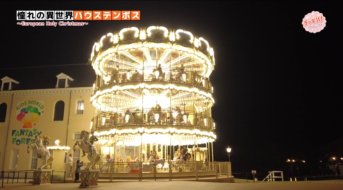 日本初の3階建てメリーゴーラウンド「スカイカルーセル」。3階からハウステンボスの夜景を一望できます。