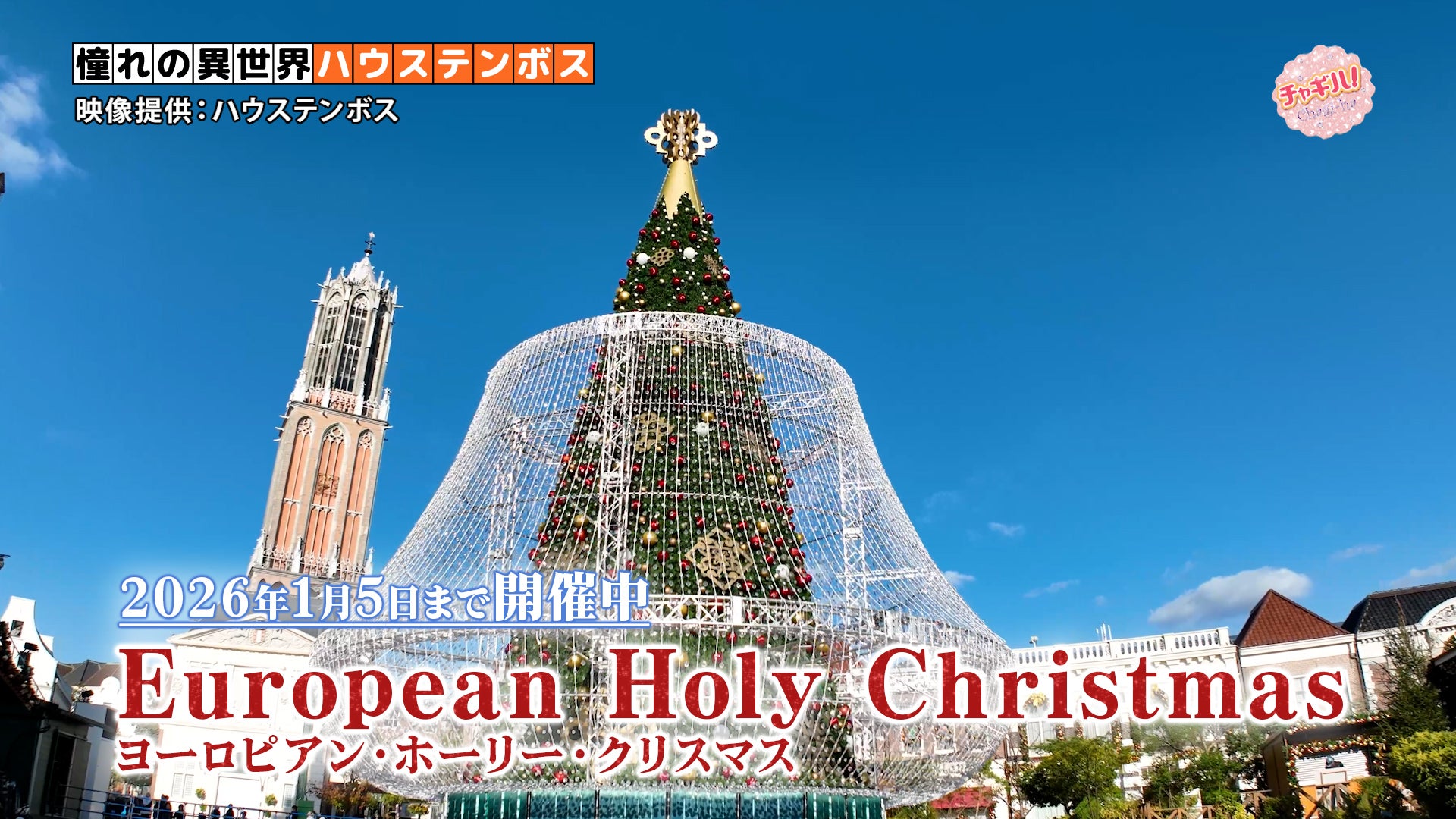 長崎県佐世保市のテーマパーク「ハウステンボス」では、1月5日まで「ヨーロピアン・ホーリー・クリスマス」が開催中です。ヨーロッパの街並みを舞台に楽しむクリスマス。今年は、360度に輝きを放つ高さ約15mの「グランド・シャンデリアツリー」が登場しました。