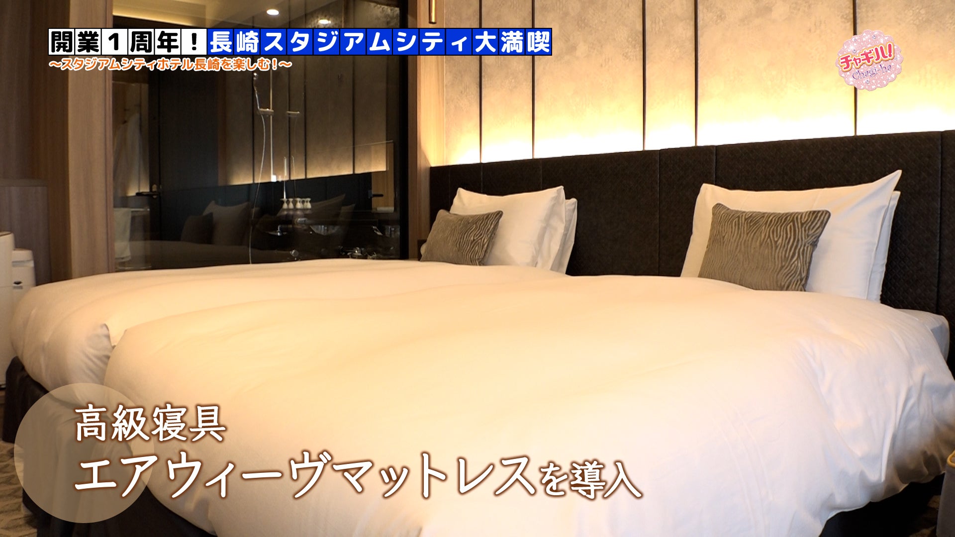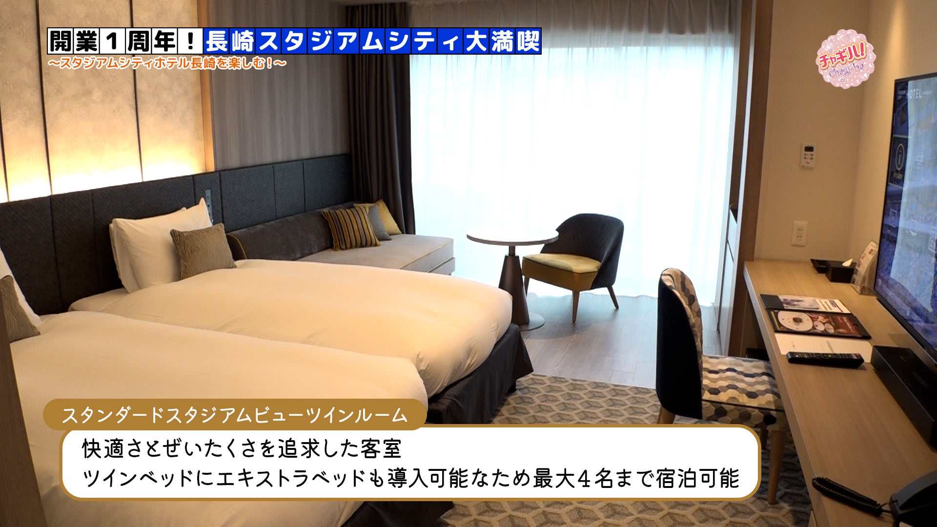 全長300mのジップラインを体験した2人は、スタジアム併設のホテルへ。まずは客室をチェックします。