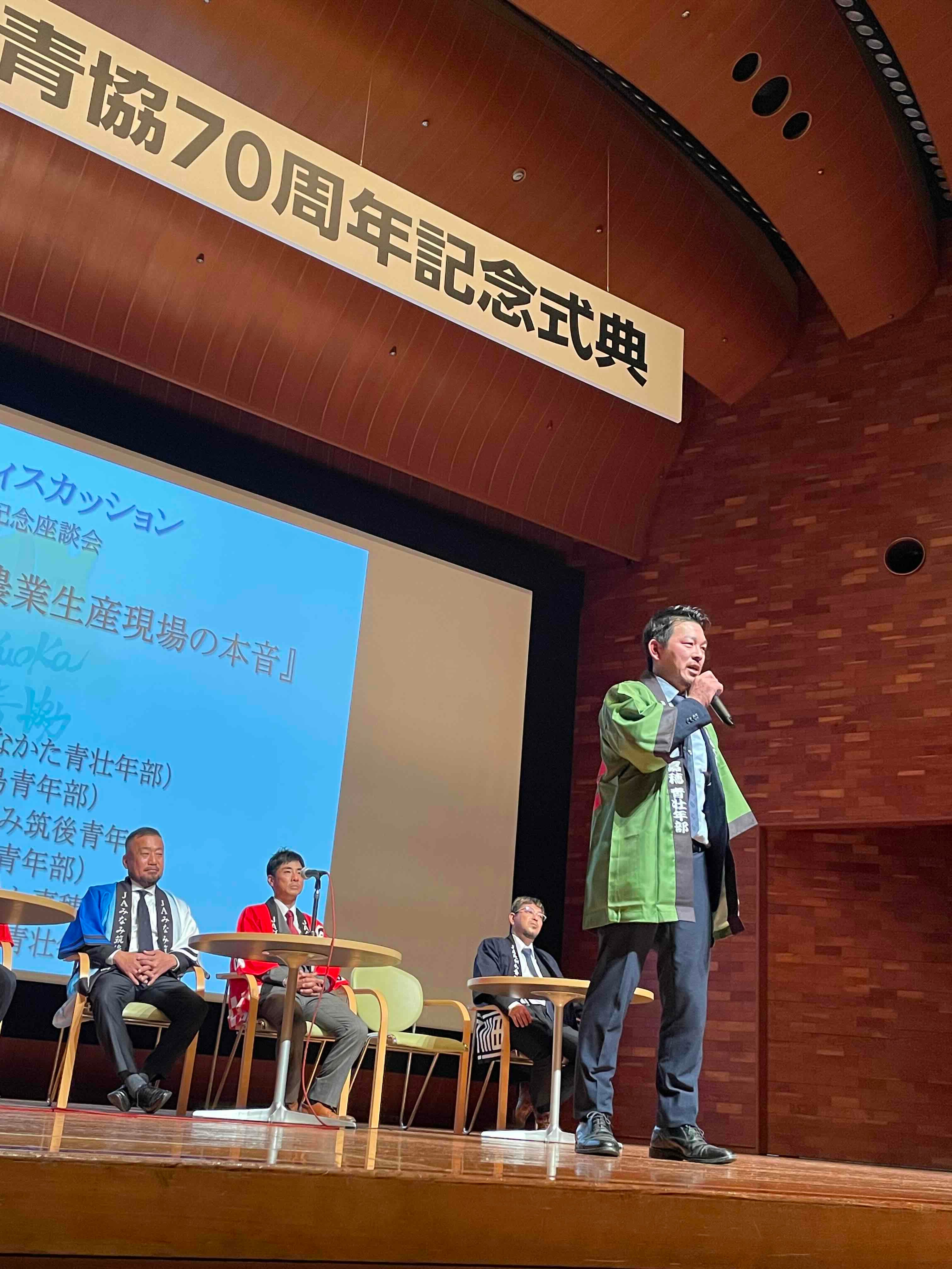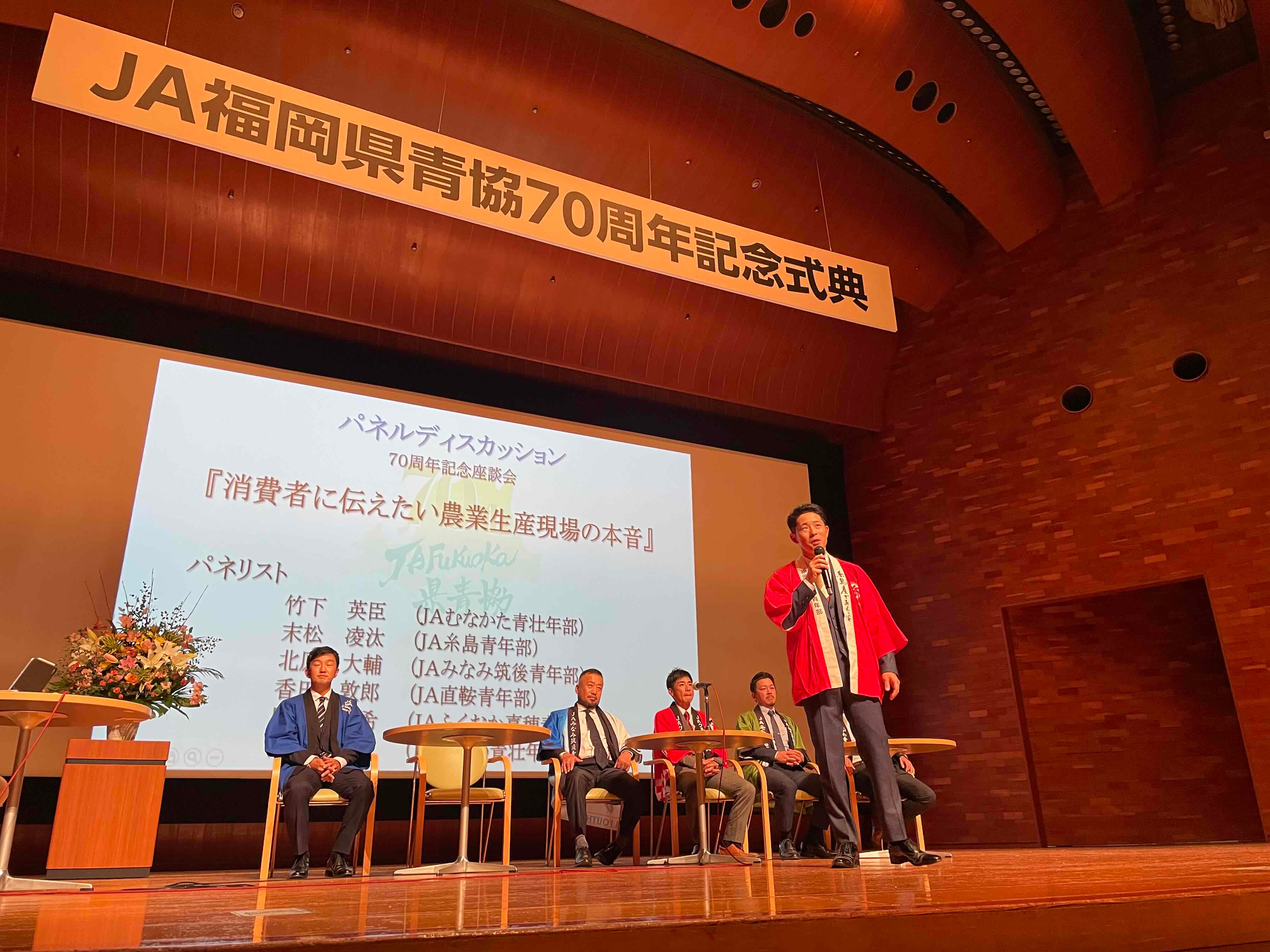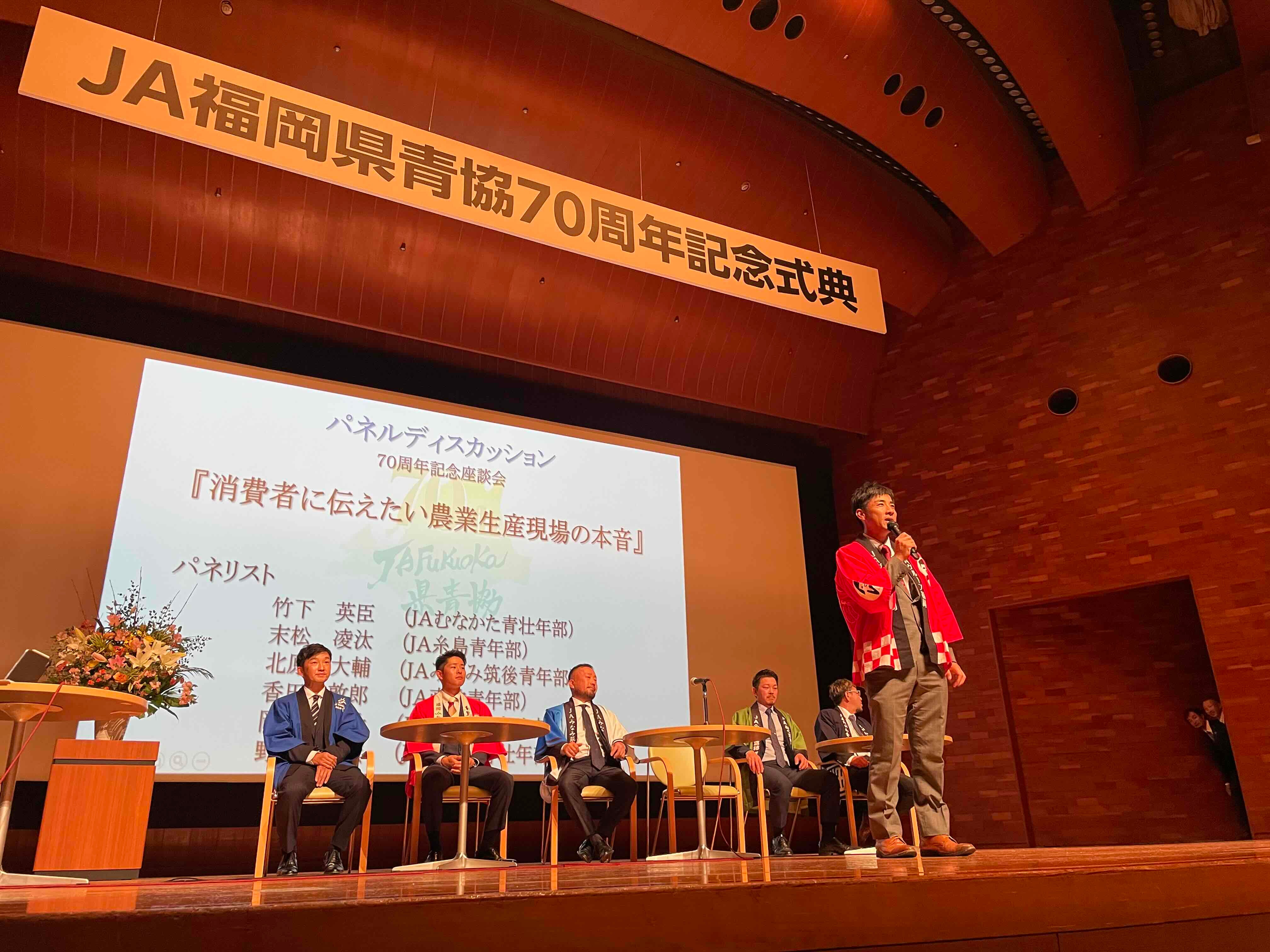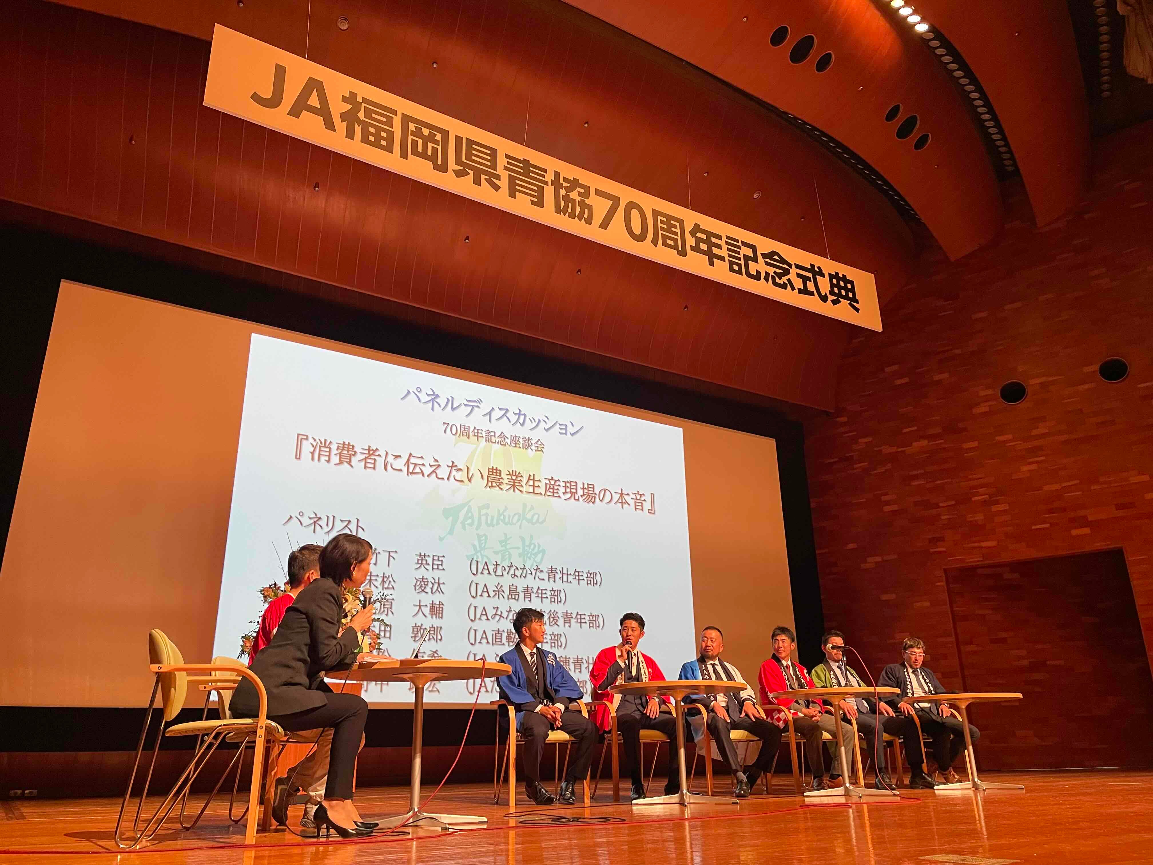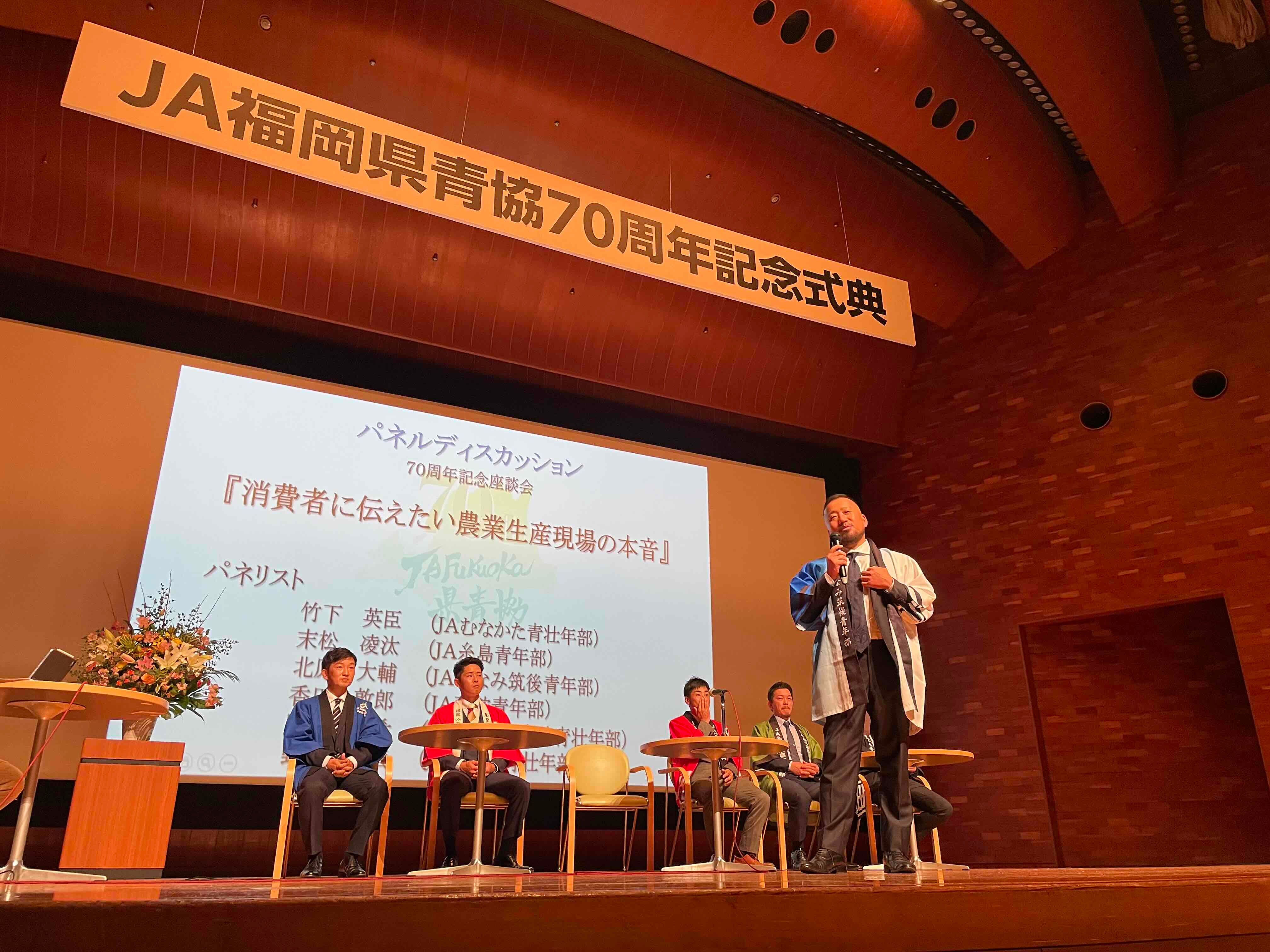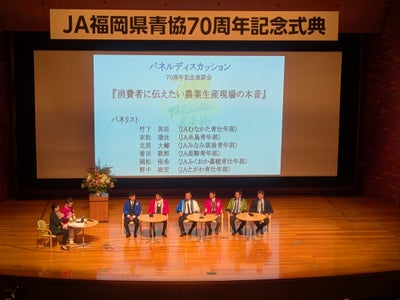 JA福岡県青協70周年記念式典で行われた「歴代県青協委員の本音」と題したパネルディスカッション!3グループ目のトークテーマは『消費者に伝えたい農業生産現場の本音』でした。