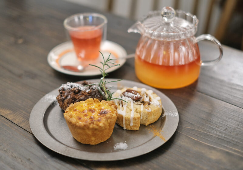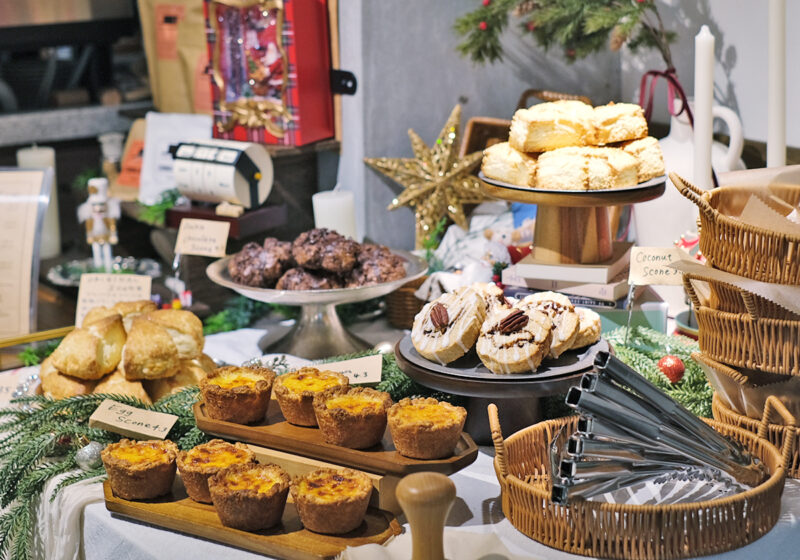 発酵バターと生クリームを使ってしっとりとした食感に仕上げたスコーンもおすすめのスイーツ。一般的にパイ生地を使うエッグタルトをスコーン生地で作った「エッグスコーン」(430円 ※手前)や、チョコ生地にチョコレートがかかった「ダブルチョコレートスコーン」(450円)、パンのシナモンロールのようなうずまきがかわいい「ピーカンシナモンロールスコーン」など、どのアレンジも魅力的です。