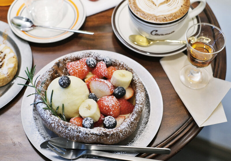 こちらの一押しメニューは、ドイツ発祥のパンケーキ「ダッチベイビー」。シンプルな「クラシック ダッチベイビー」のほか、季節ごとにトッピングが替わる季節限定メニューがあり、4月頃まではイチゴやブルーベリーの彩りがきれいな「ベリーベリー ダッチベイビー」(1,300円)が用意されています。