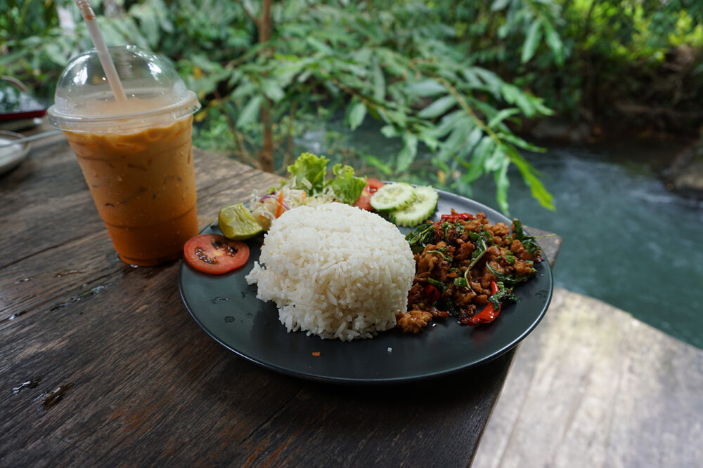次に紹介するのは同じ水辺でも清流のすぐそばに建つリバーサイドカフェ「The Hideaway(ザ・ハイダウエイ)」。都会の喧騒を忘れさせる静かな雰囲気のこちらでは、オーソドックスなタイ料理を味わうことができます。川のせせらぎを足元で感じながら、タイスタイルのランチを楽しんで。