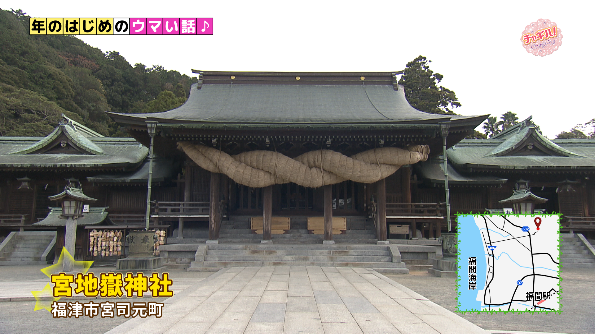 あけましておめでとうございます。新年1回目の放送は、ここ宮地嶽神社からスタートです。