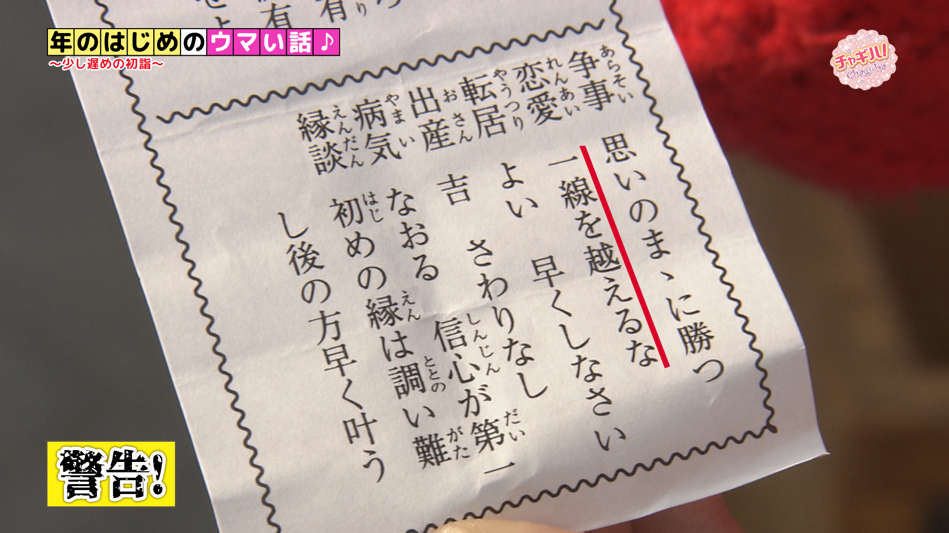 大吉を引いた来亜。恋愛は「一線を越えるな」