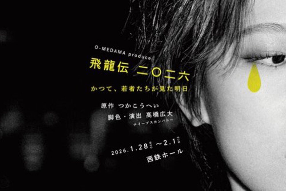 福岡で発足した演劇プロジェクト「O-MEDAMA」が、福岡県嘉穂郡嘉穂町出身の劇作家・つかこうへいの戯曲『飛龍伝』を『飛龍伝二〇二六 -かつて、若者たちが見た明日-』と題して現代に蘇らせた。