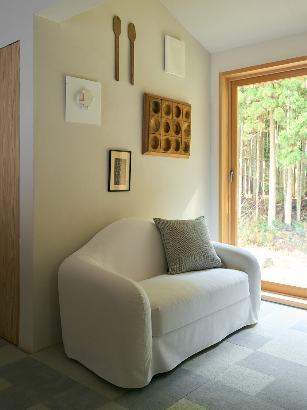 デザインにおいては、日常の快適性を重視し穏やかに広がる曲線によって東吉野の山並みに着想を得た落ち着きのある表情がかたちにされています。