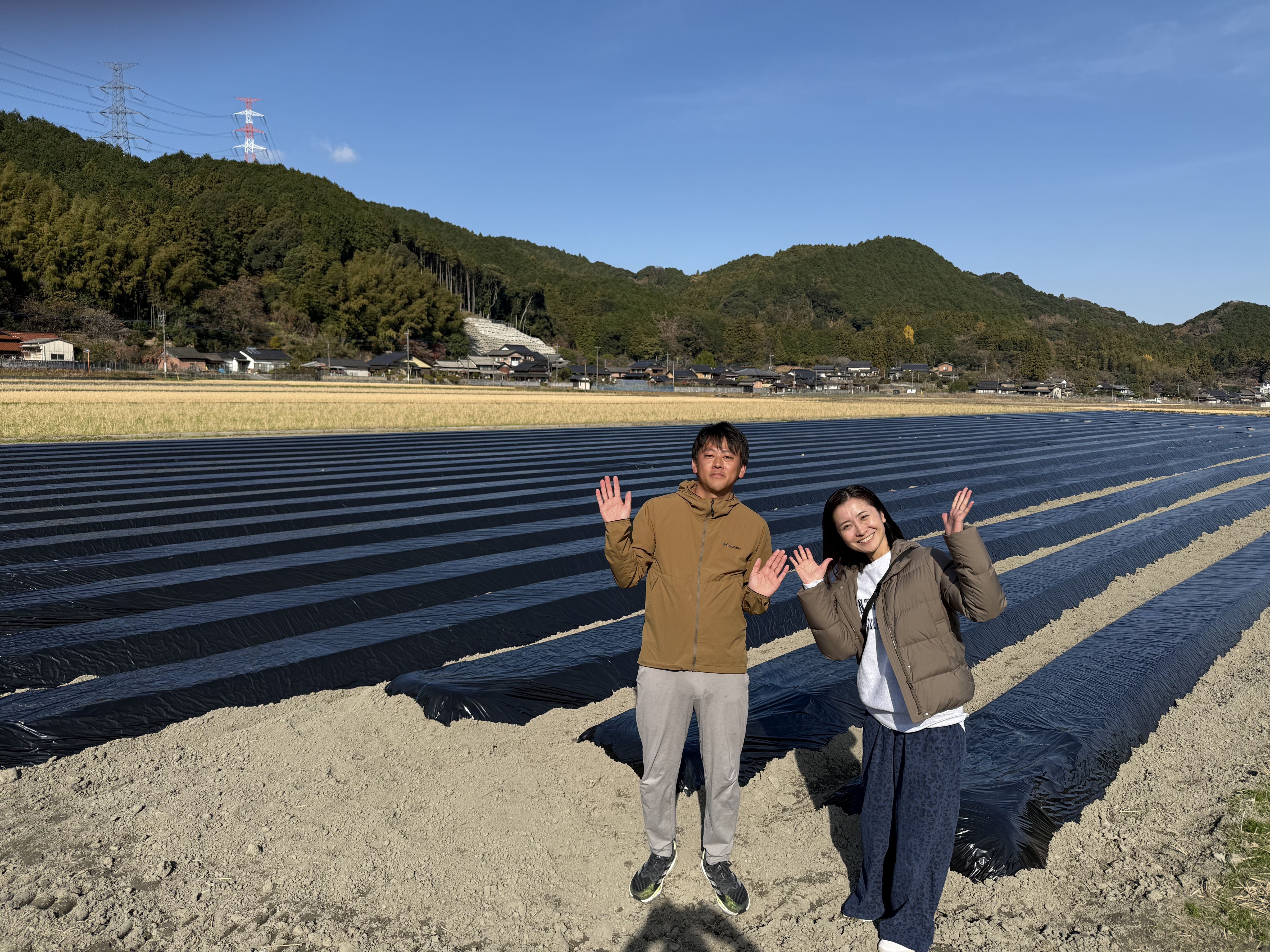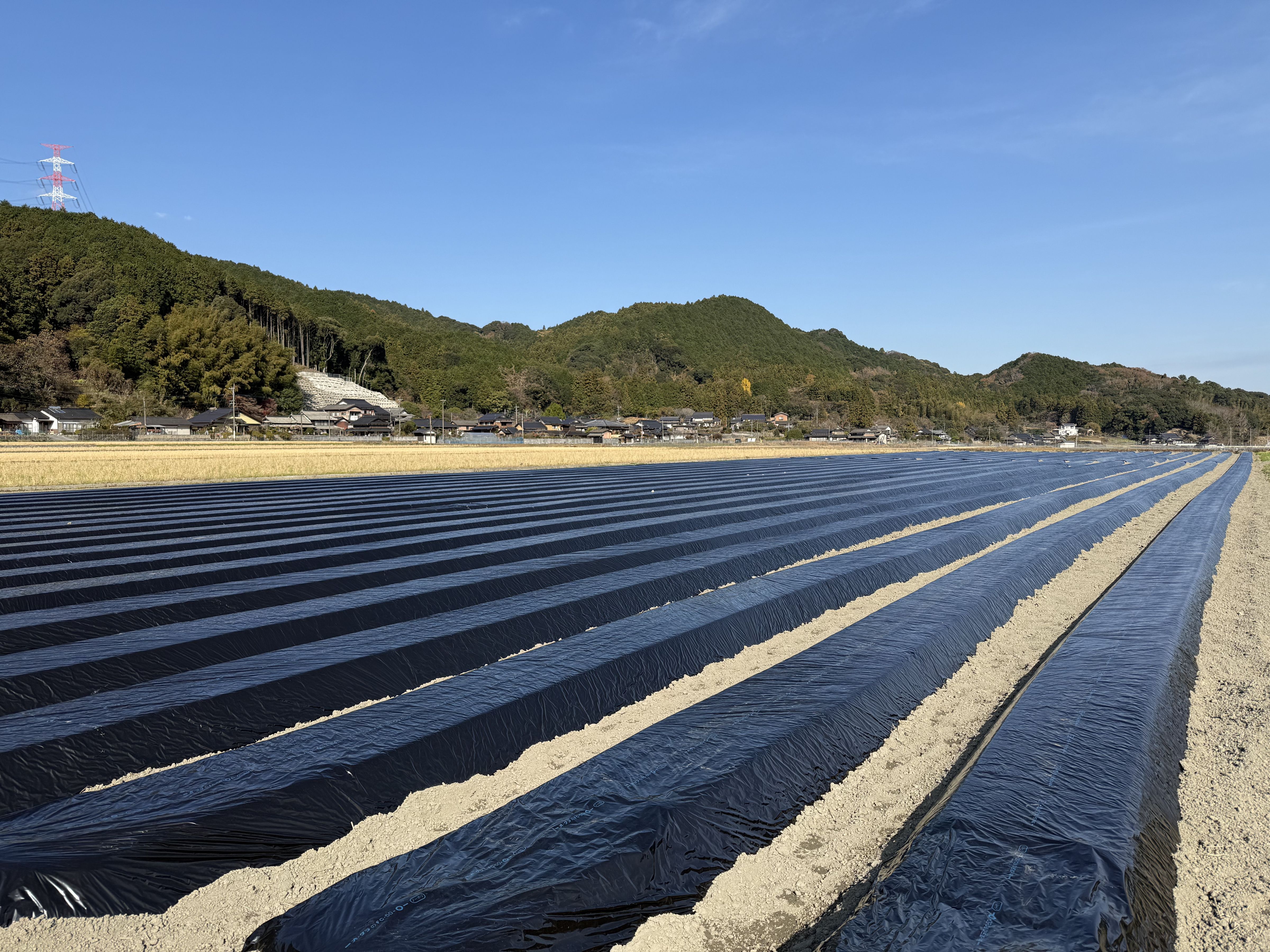 圃場にお邪魔した12月は、土づくりのために土の表面をビニールで覆ってマルチングされていました。