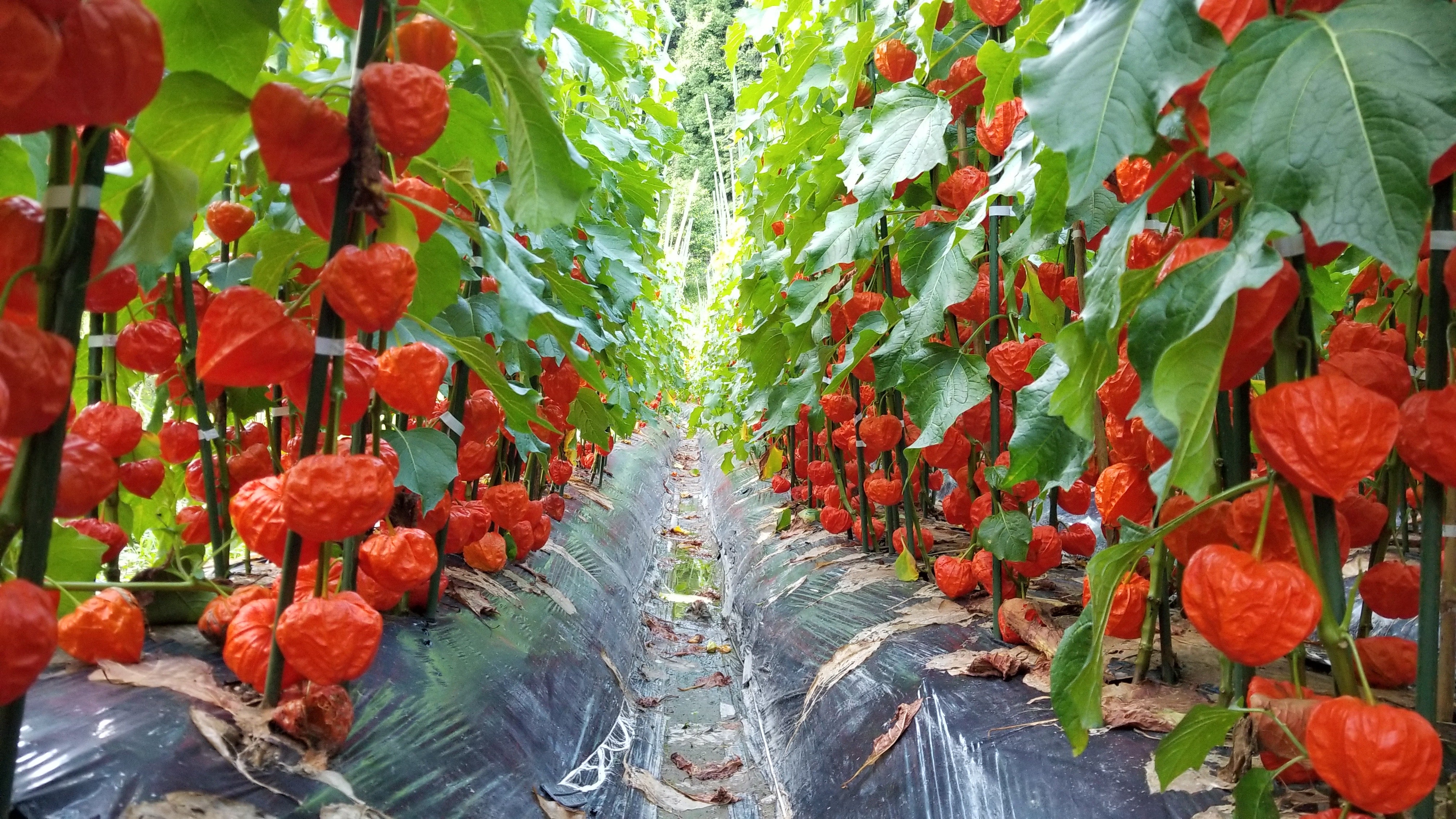 ほおずきは病気にもなりやすいし、ハウスで作ることがほとんどなので、他の生産者さんには露地で作るとかありえん!と言われるそうですが、露地栽培は茎が硬く、色づきがとてもいいそうです!
