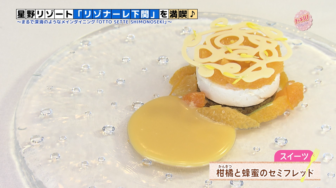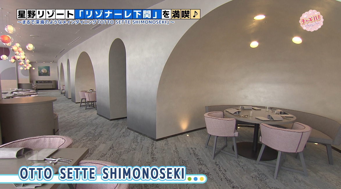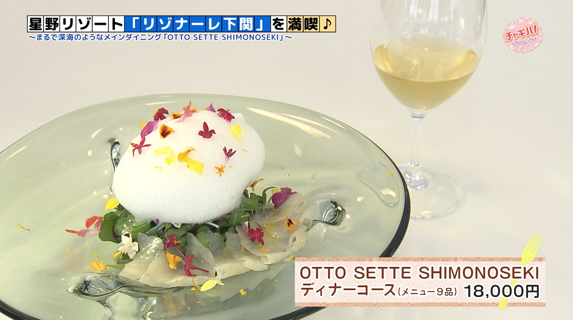 関門海峡の深海をイメージしてデザインされたメインダイニング「OTTO SETTE SHIMONOSEKI」。コンセプトはイタリア語で「フグの新たな魅力発見」を意味する「 Il Fascino Di Fugu」 (イルファッシノディフグ)。全9品のディナーコースは、下関名物のフグを洗練されたイタリア料理に昇華させています。