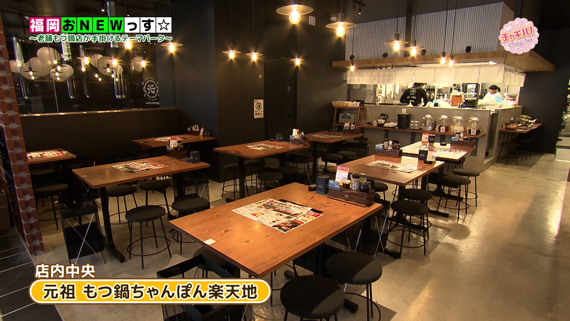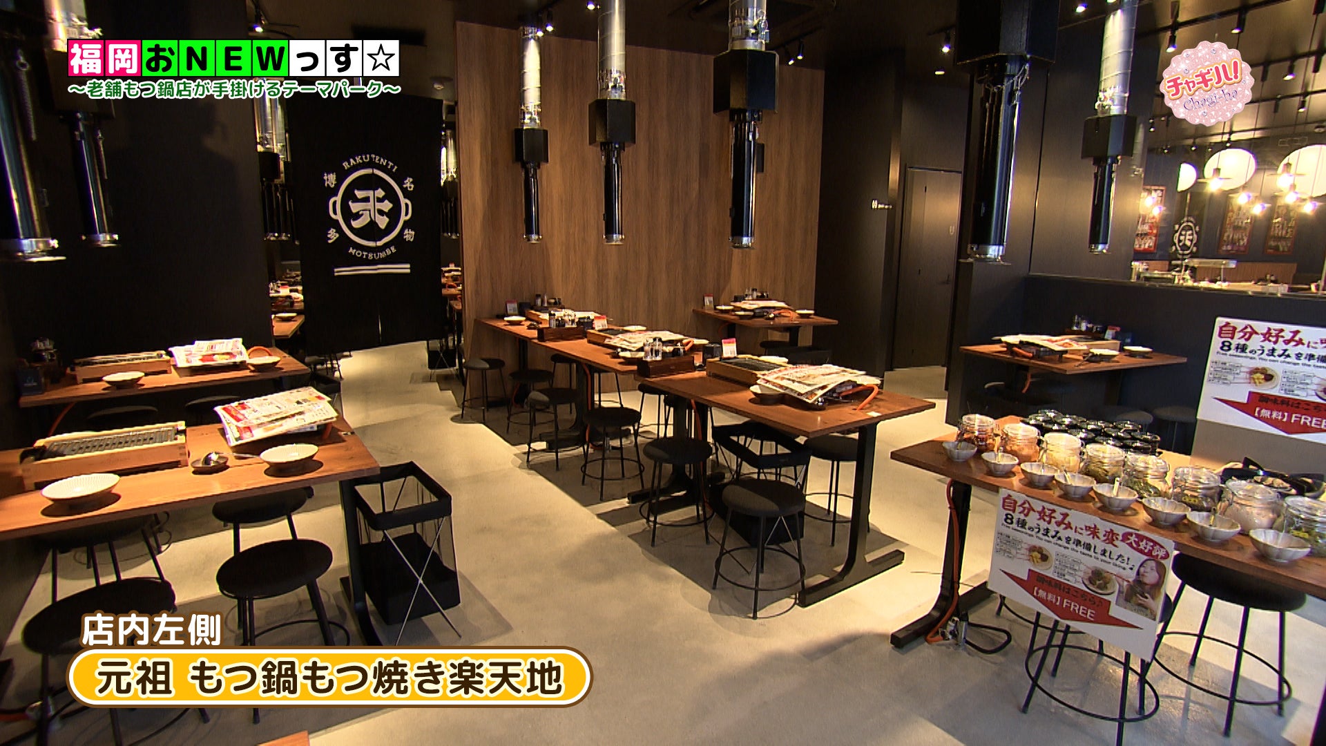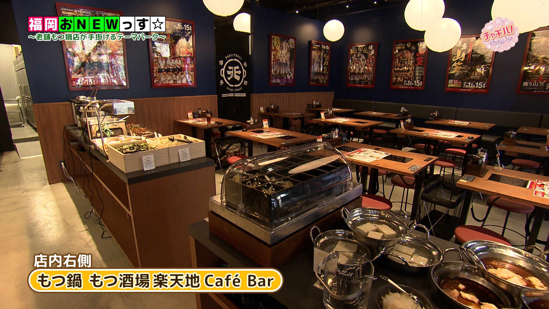「元祖 もつ鍋ちゃんぽん楽天地」「元祖 もつ鍋もつ焼き楽天地」「もつ酒場楽天地Café Bar」の3業態が集結!屋台の雰囲気が味わえる客席は合計258席。店内には博多祇園山笠を展示し、博多の文化や歴史も感じられるスポットを目指します。