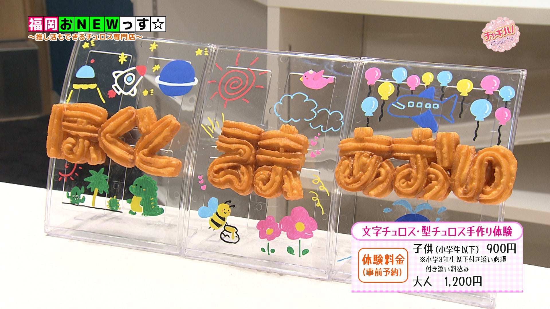 「推し・文字チュロス」の手作り体験は事前予約制で、料金は小学生以下900円、大人は1,200円です。30センチのチュロス5本分を使って好きな文字や形のチュロスを作り、スタッフが揚げてくれます。