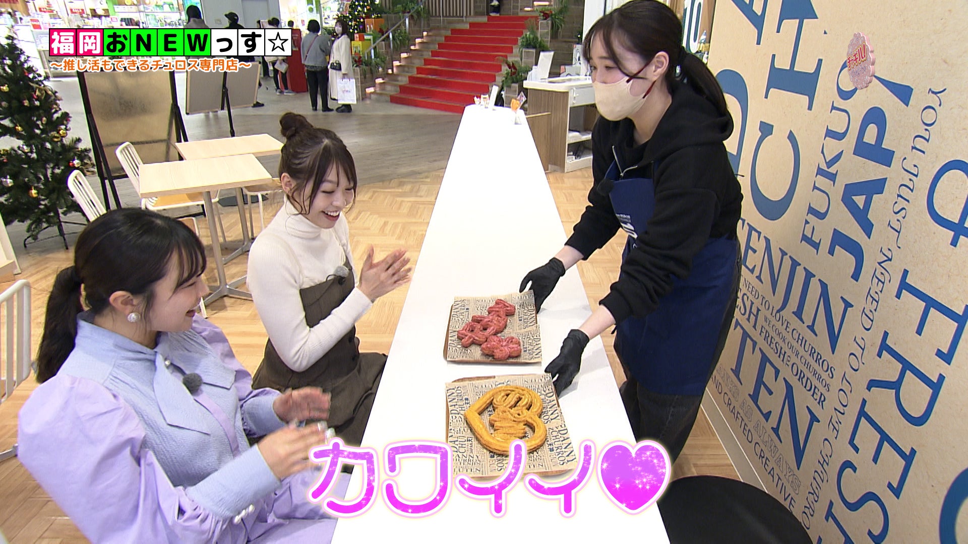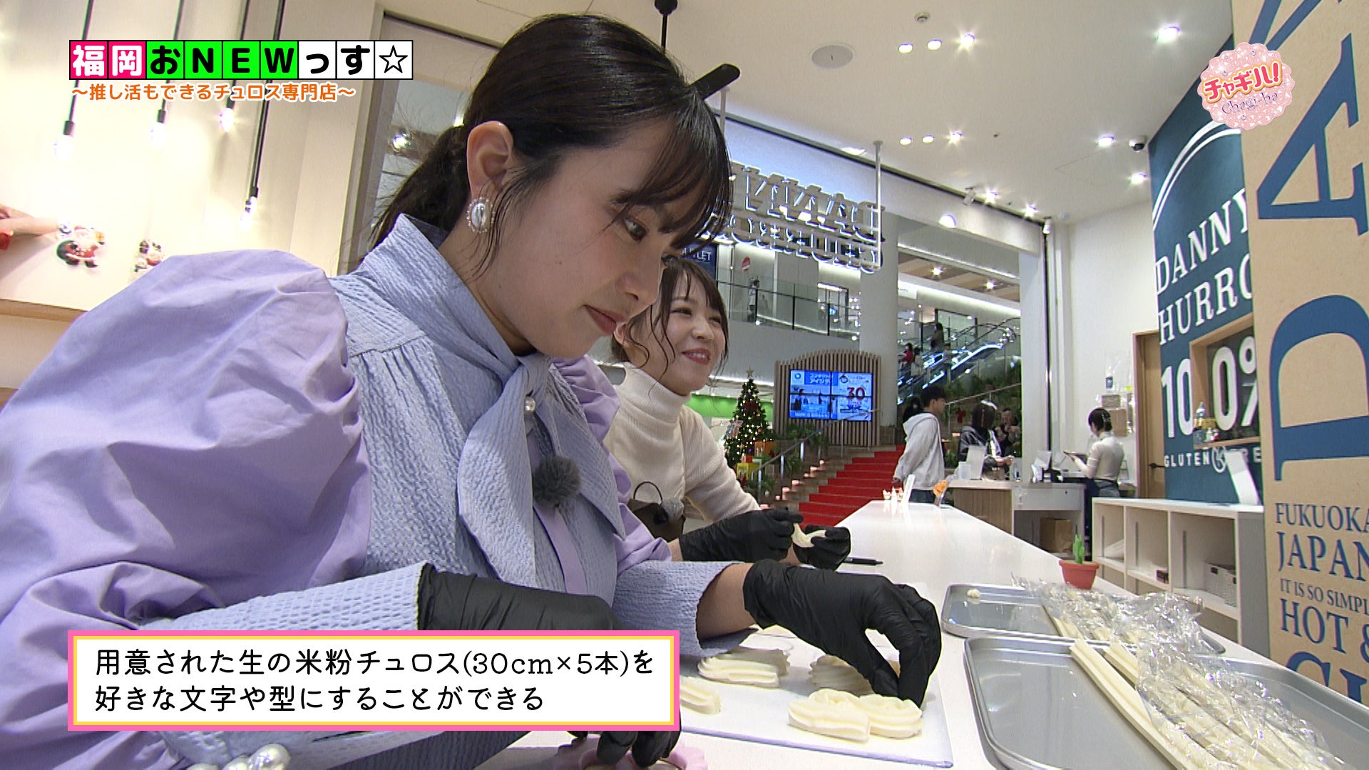 マークイズ福岡ももち店では、ワークショップ感覚で、好きな文字や形のチュロスを作ることができます。