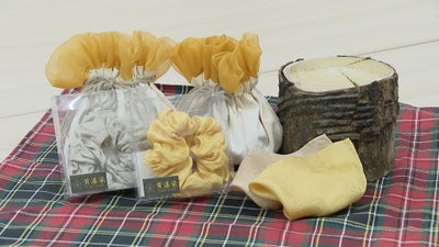 三木博文さん(36)は漆の抗菌性に目をつけ研究した結果、漆染めに着目。県の工業技術センターと協同研究し「高い抗菌性」と「高い紫外線防御効果」を発見した。アームカバーなど薬剤を使わず製造できるようになった。