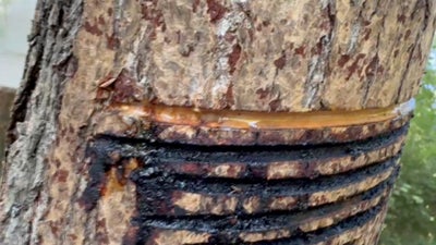 しかし、樹液を取り切った樹木をチップにして煮出すと、茶褐色の液がとれて繊維を染めると、鮮やかな黄色に染まる。しかも染液にはかぶれ成分は含まれていないため、スカーフやアクセサリーに加工したものが注目を集めている。