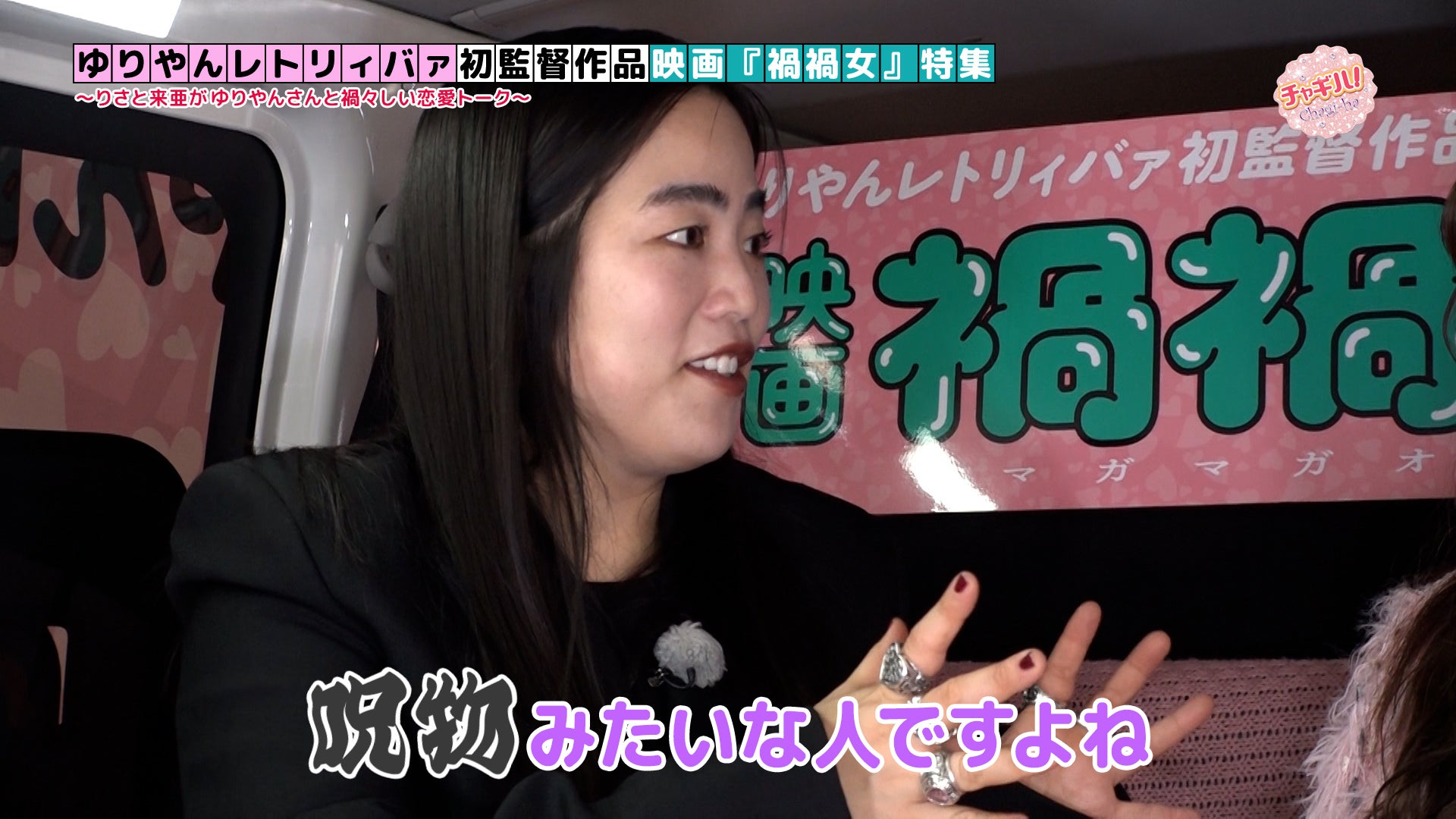 全国各地を「禍禍カー」で訪問中のゆりやんさん。いろんな人から禍禍しい恋愛エピソードを聞いています。チャギハ!リポーターの黒田りさと岡部来亜も自身の恋愛事情を赤裸々に語りました。