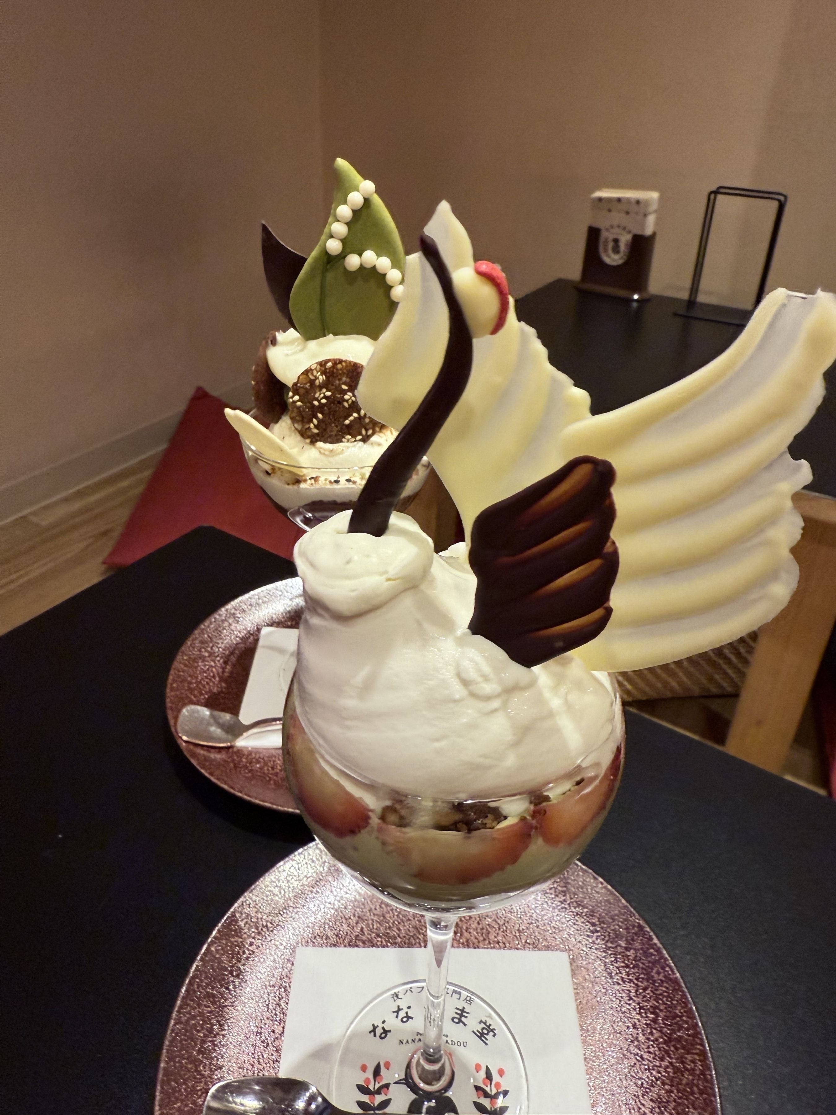 午後からは、札幌に来たら外せない「シメパフェ」文化を体験しに「ななかま堂」へ。和の趣がある店内で運ばれてきたパフェは、もはや芸術作品。初めて訪れた彼女も「食べるのがもったいない…」とシャッターが止まりません。
