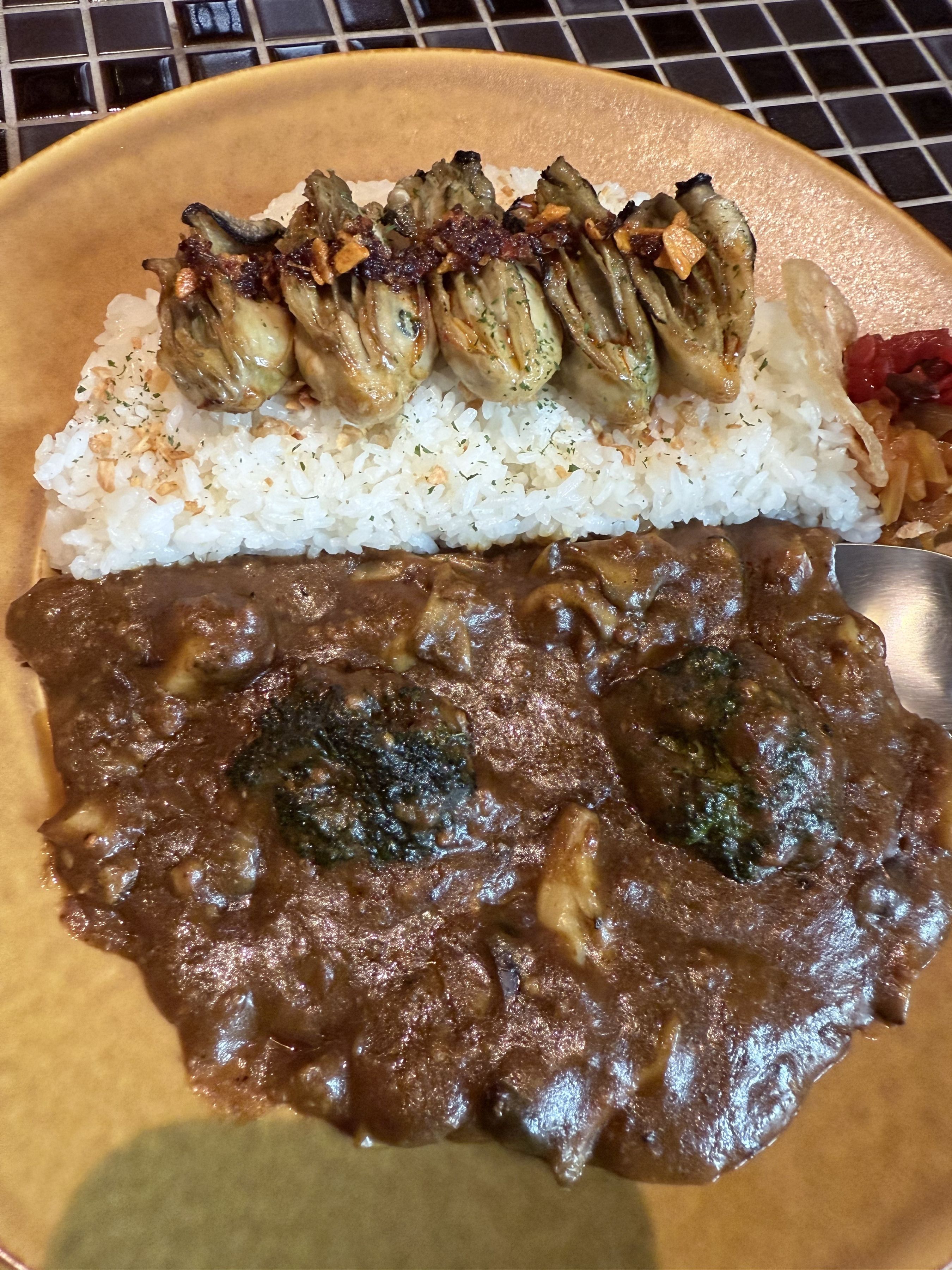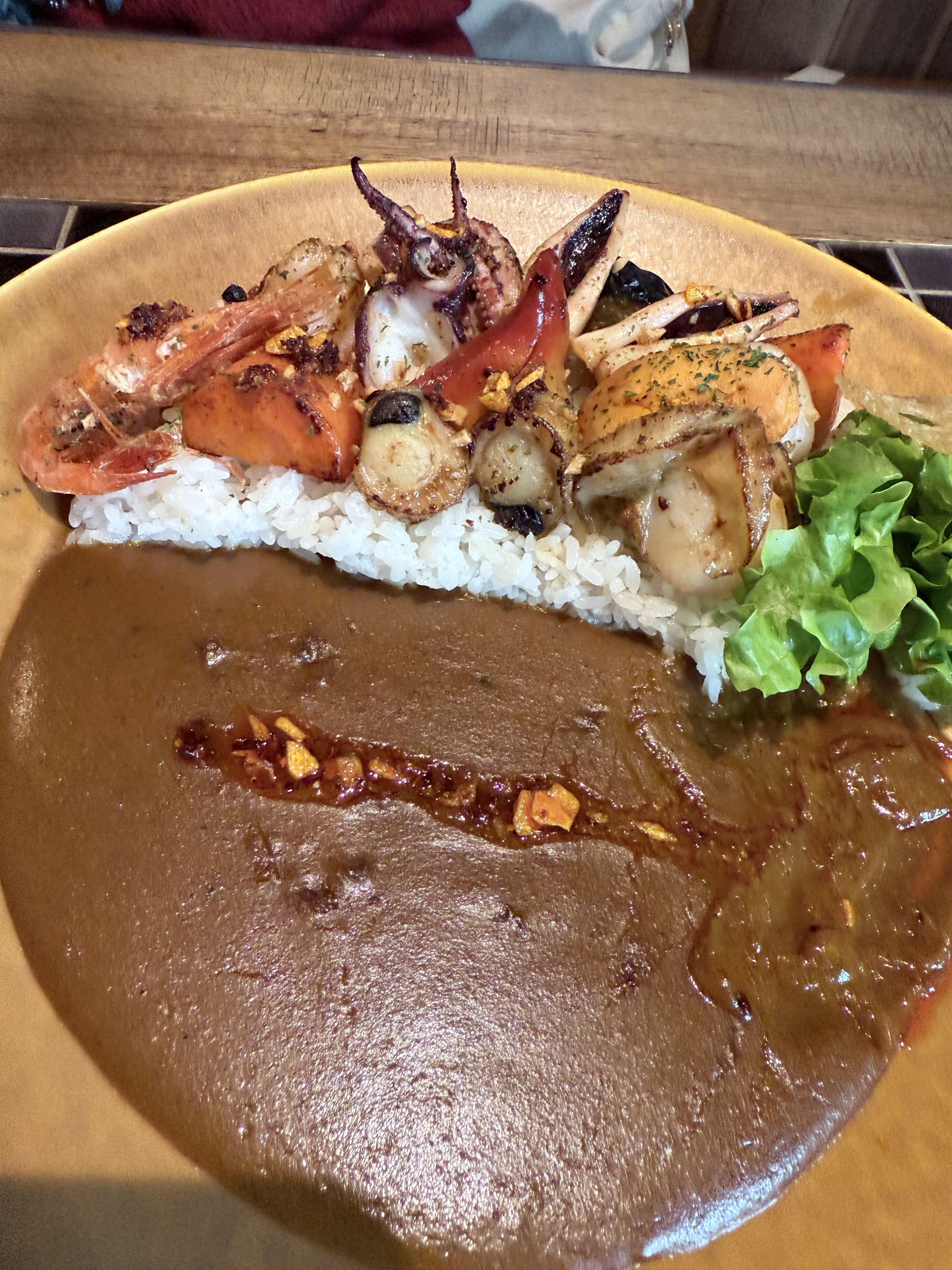 中継を終え、心もお腹も満たしに向かったのは「円山教授。」。お目当ては名物の「浜カレー」です。スパイシーなルーと、これでもかと乗せられた海鮮の旨みが口の中で溶け合うハーモニーは、まさに「たまらん!」の一言。