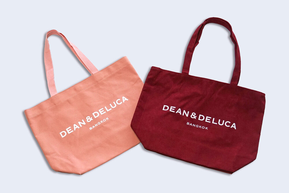 1つ目はタイの「ディーン&デルーカ」で定番アイテムとなった【BANGKOK】の印字がある限定トートバッグ(左上)。丈夫なキャンバス地のトートバッグは、カラフルな色やタイ伝統布「パーカオマー」柄、ファスナー付きなど種類が多いのが特徴です。