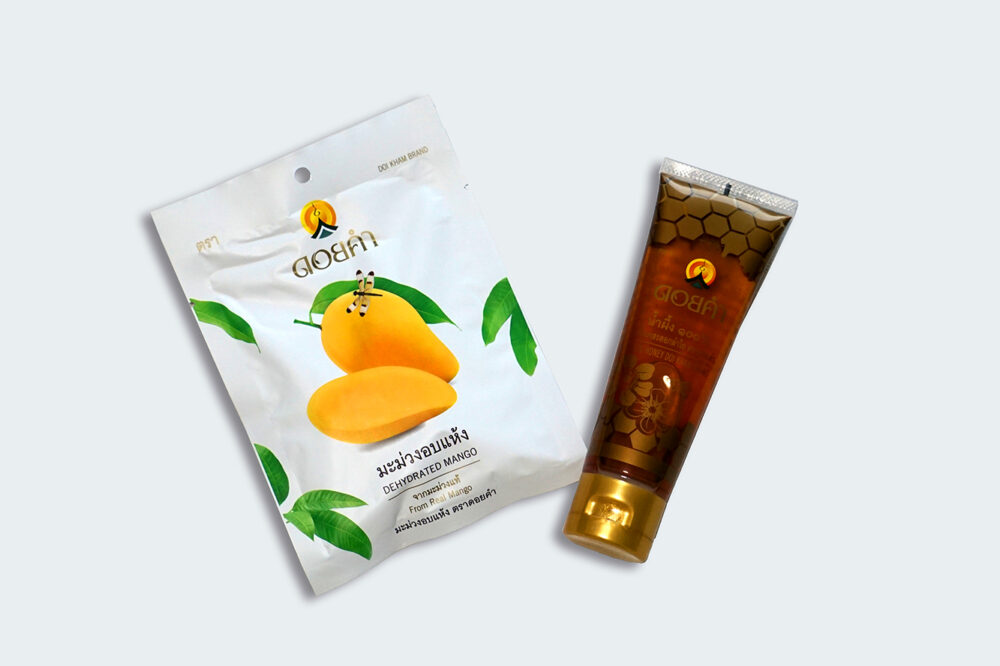 3つ目はタイの王室プロジェクトのブランド「ドイカム(Doi Kham)」のハチミツ&ドライフルーツ(左下)。安くても美味しく、安心して買える製品として地元タイでも人気のブランドで、ほかにもジュースやジャムなどもあります。