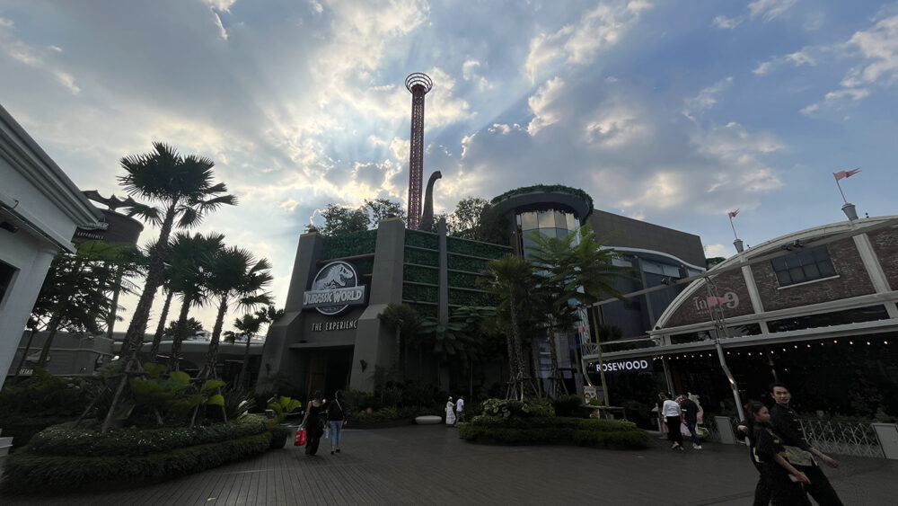 「アジアティーク・ザ・リバーフロント」の入場口と「ジュラシック・ワールド・ザ・エクスペリエンス」の全景