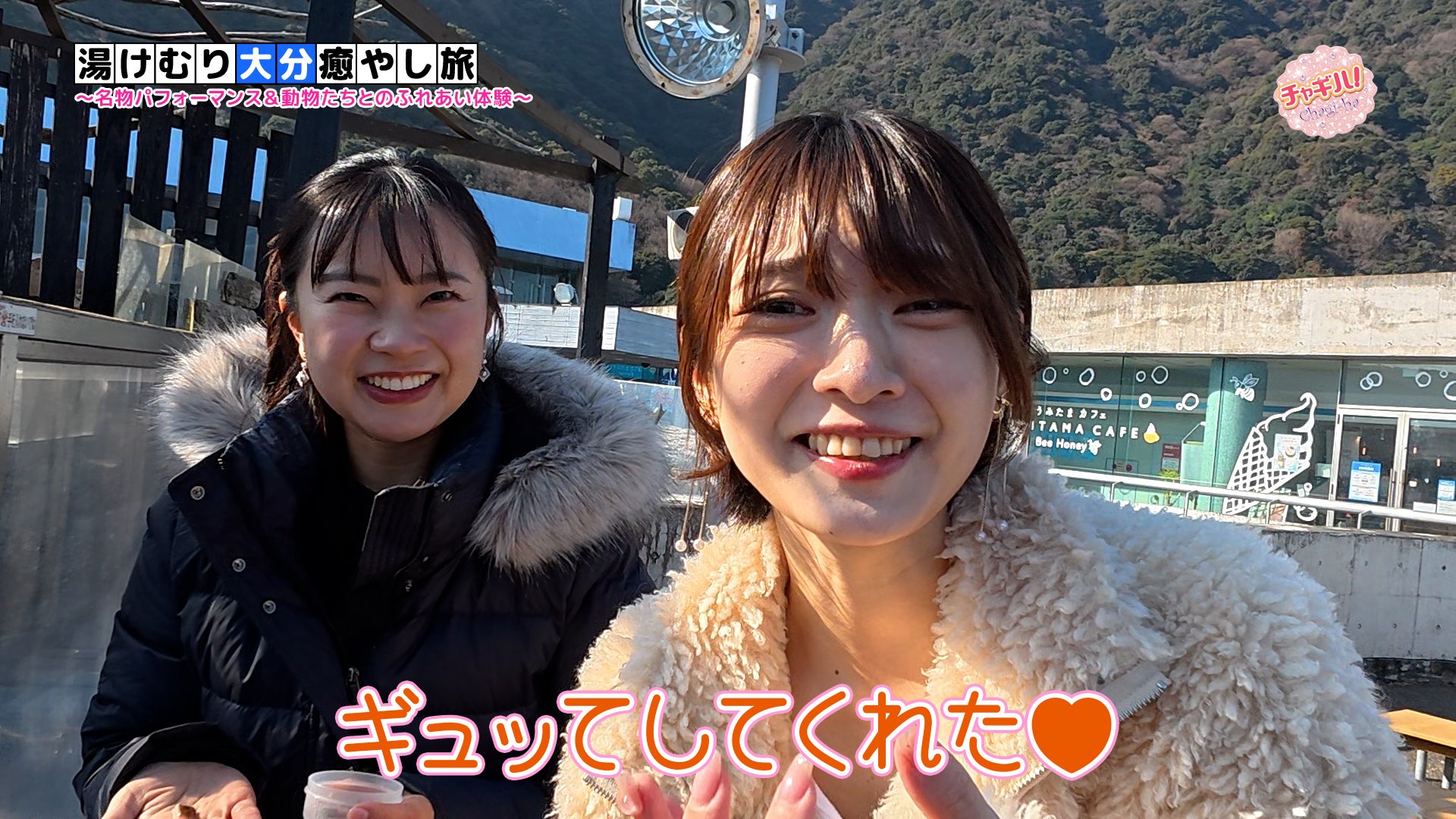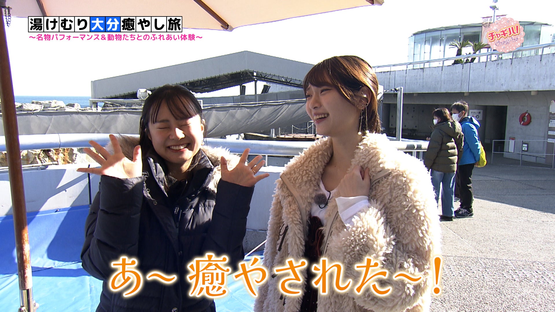 今回のチャギハ!は「湯けむり大分癒し旅」。くにさきなるみと三角英恵の2人が訪れたのは、大分市の大人気水族館「うみたまご」です。