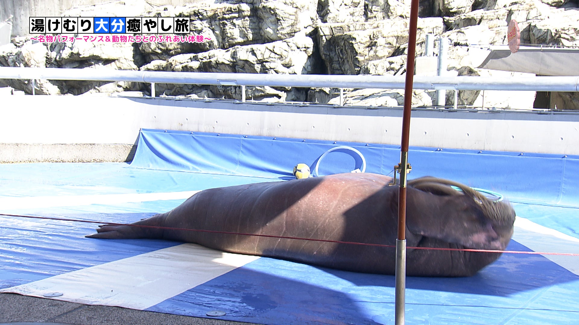 うみたまごの魅力の一つとして外せないのがセイウチのパフォーマンスショー。セイウチみーちゃんの特技は腹筋!?です。