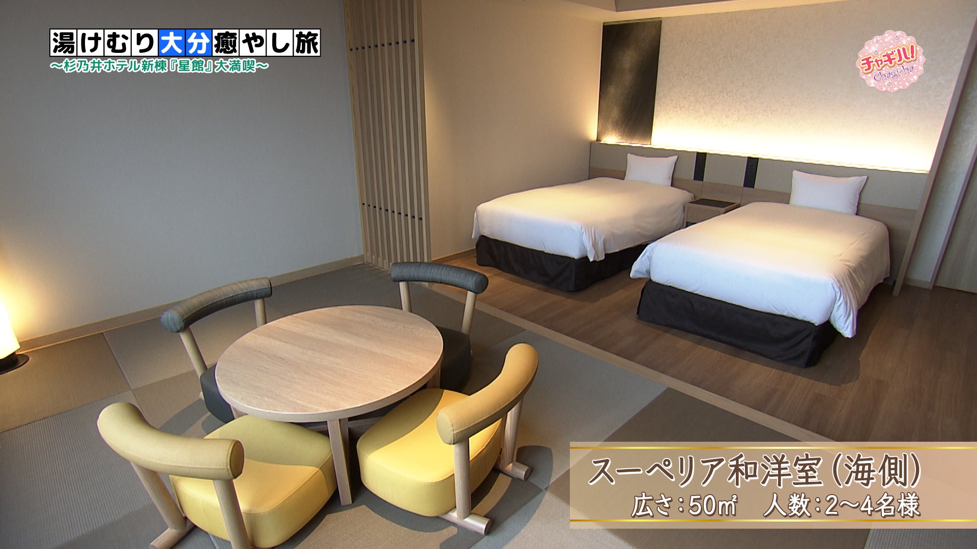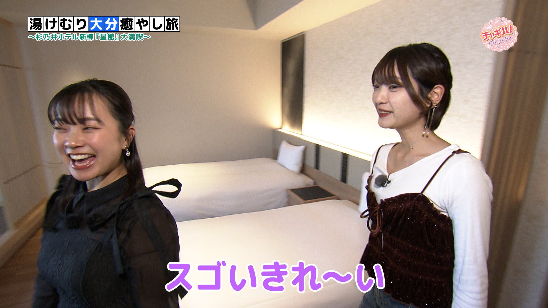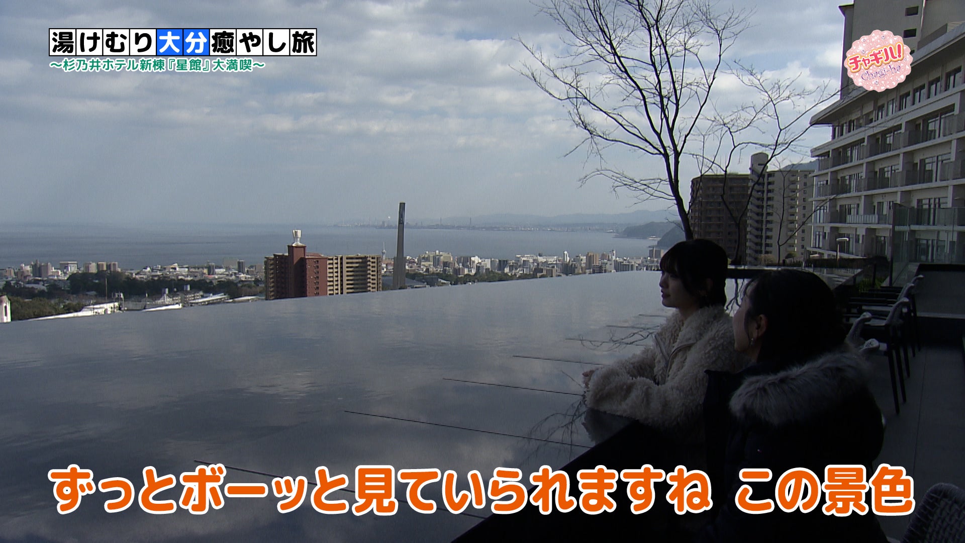 今回のチャギハ!は「湯けむり大分 いやし旅」。くにさきなるみと三角英恵の2人が訪れたのは、別府温泉杉乃井ホテル。
