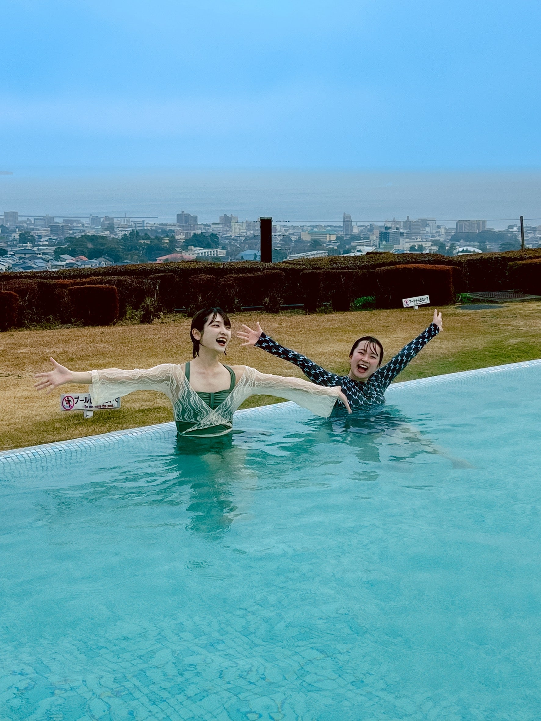 今回のチャギハ!は「湯けむり大分 いやし旅」。くにさきなるみと三角英恵の2人が訪れたのは、別府温泉杉乃井ホテル。