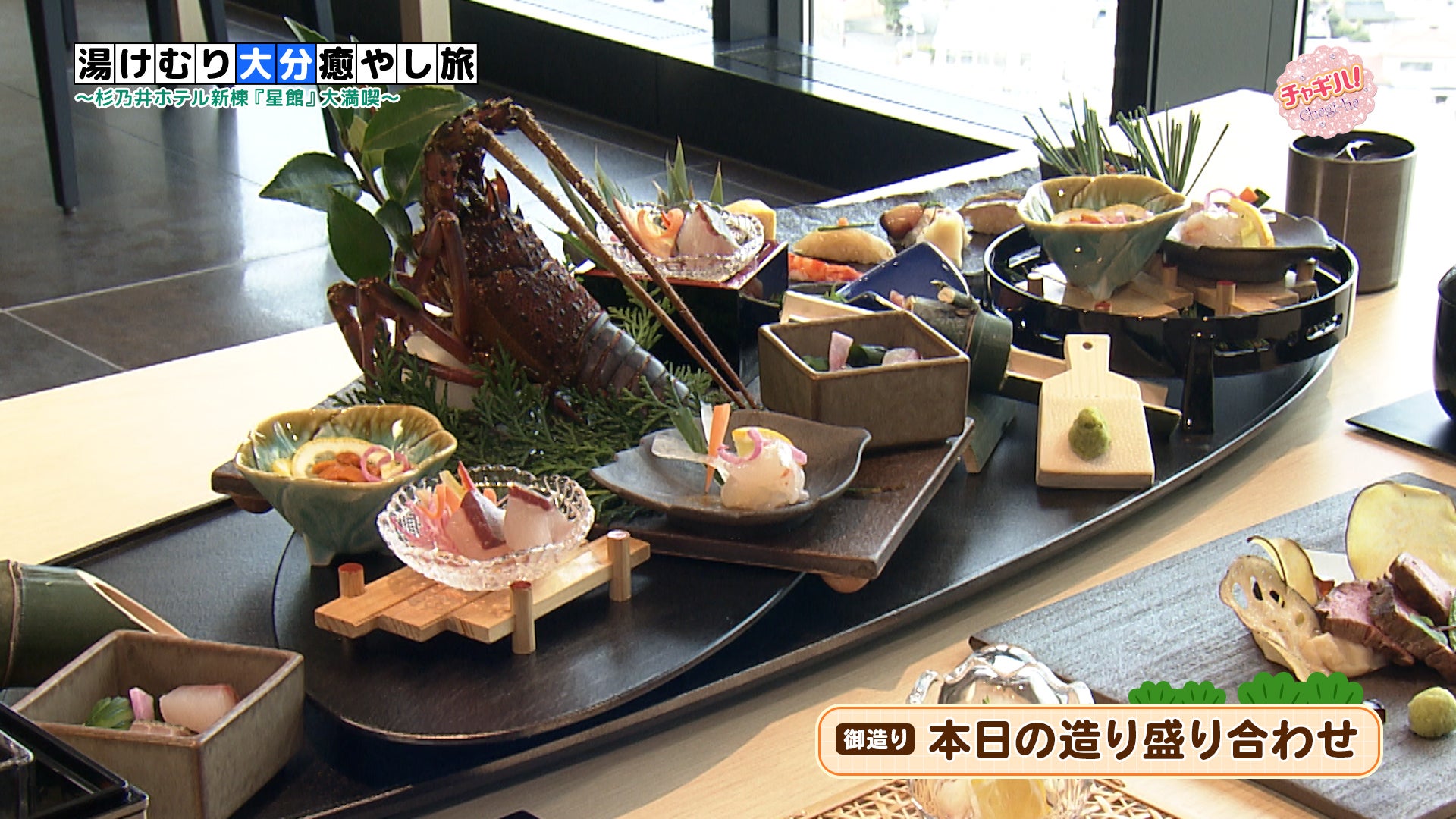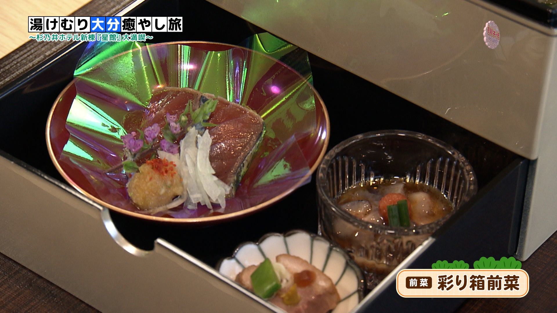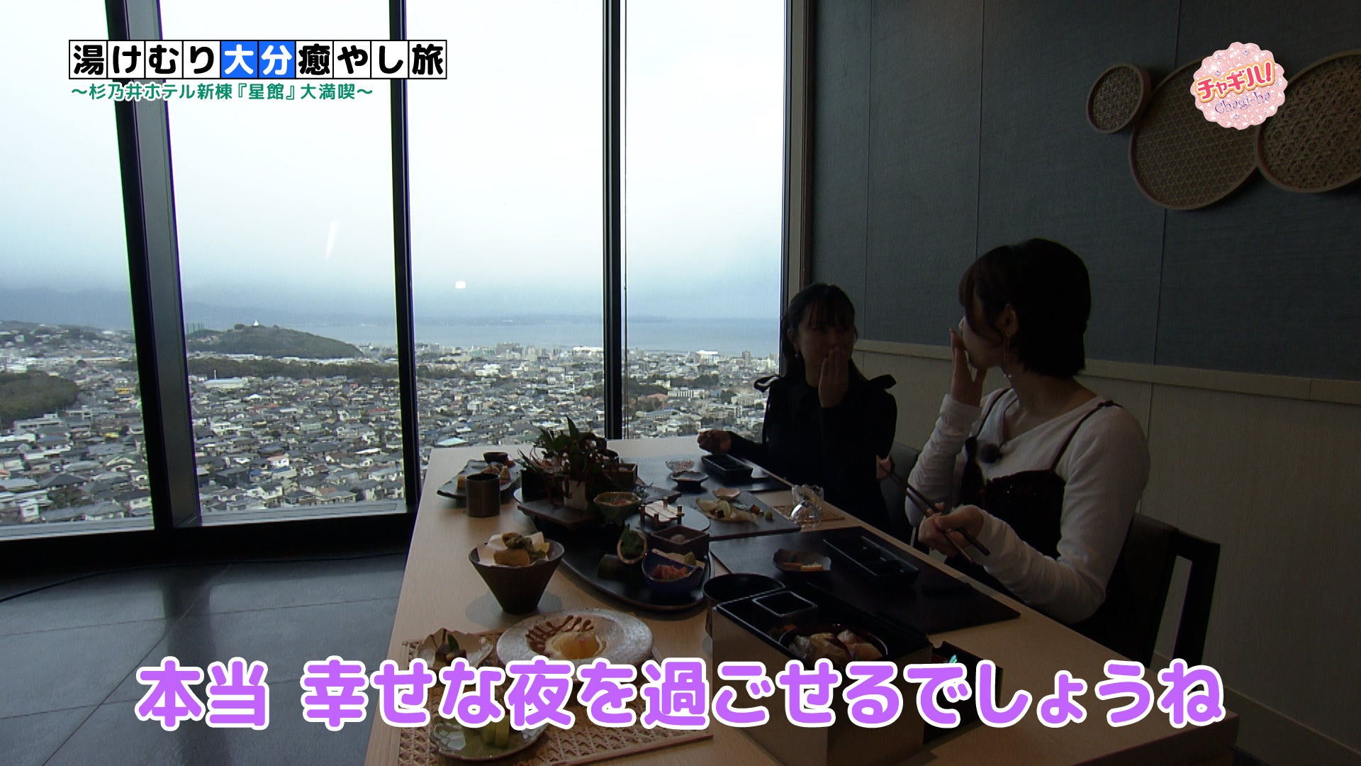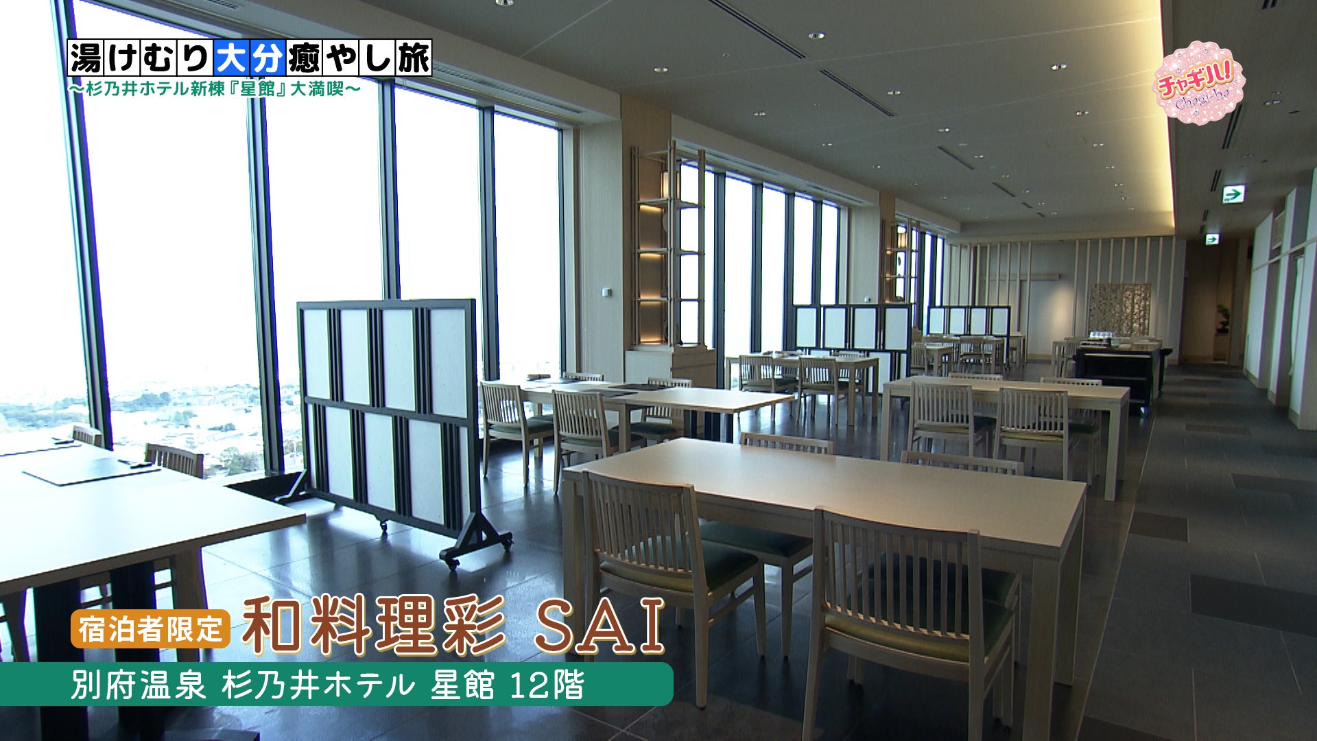 別府温泉杉乃井ホテルの新棟「星館」の12階にオープンした「和料理彩 SAI」。窓からは別府湾の景色を一望でき、店内には別府の竹細工や、大分県の焼き物「小鹿田焼」などを取り入れています。