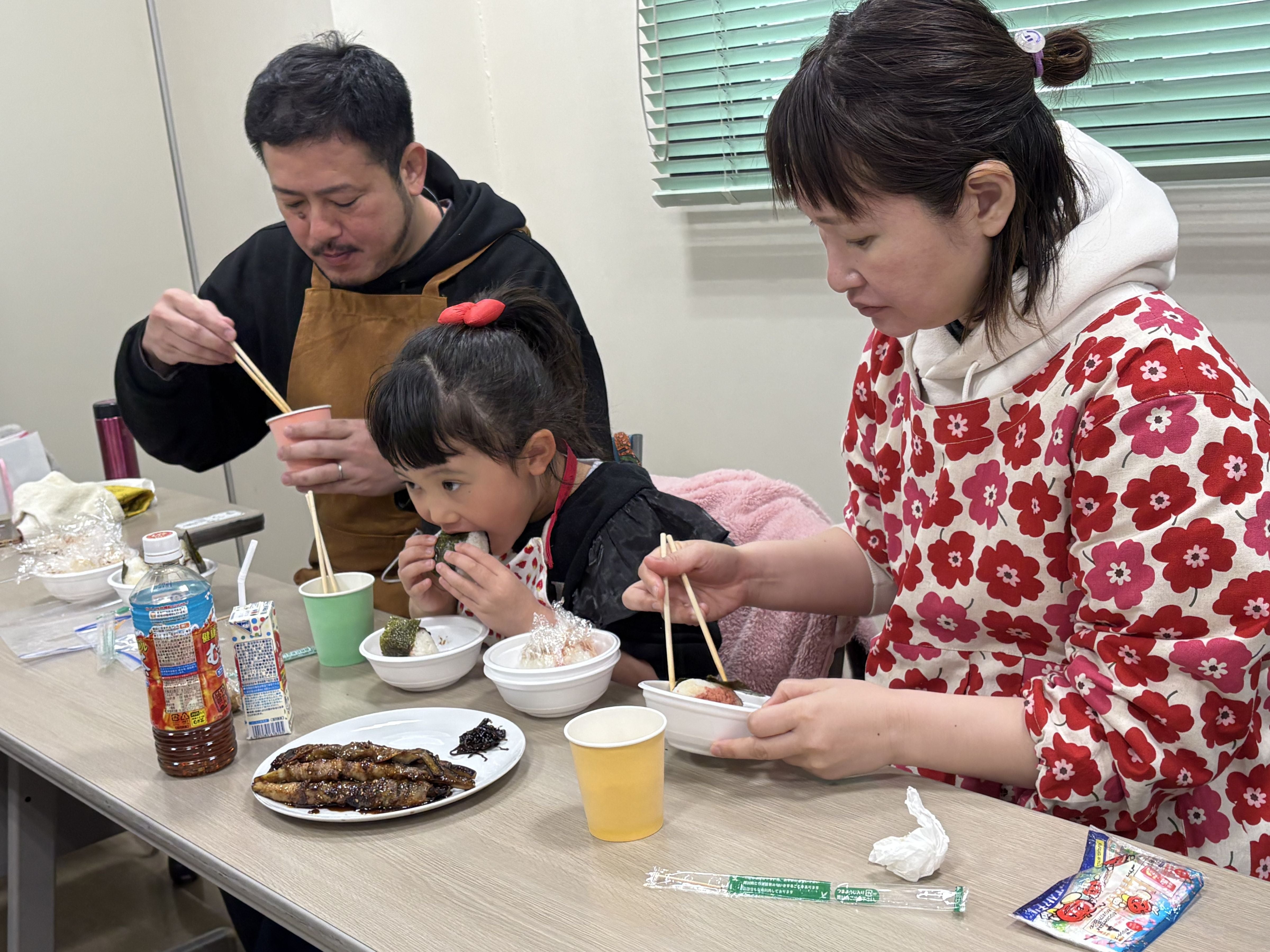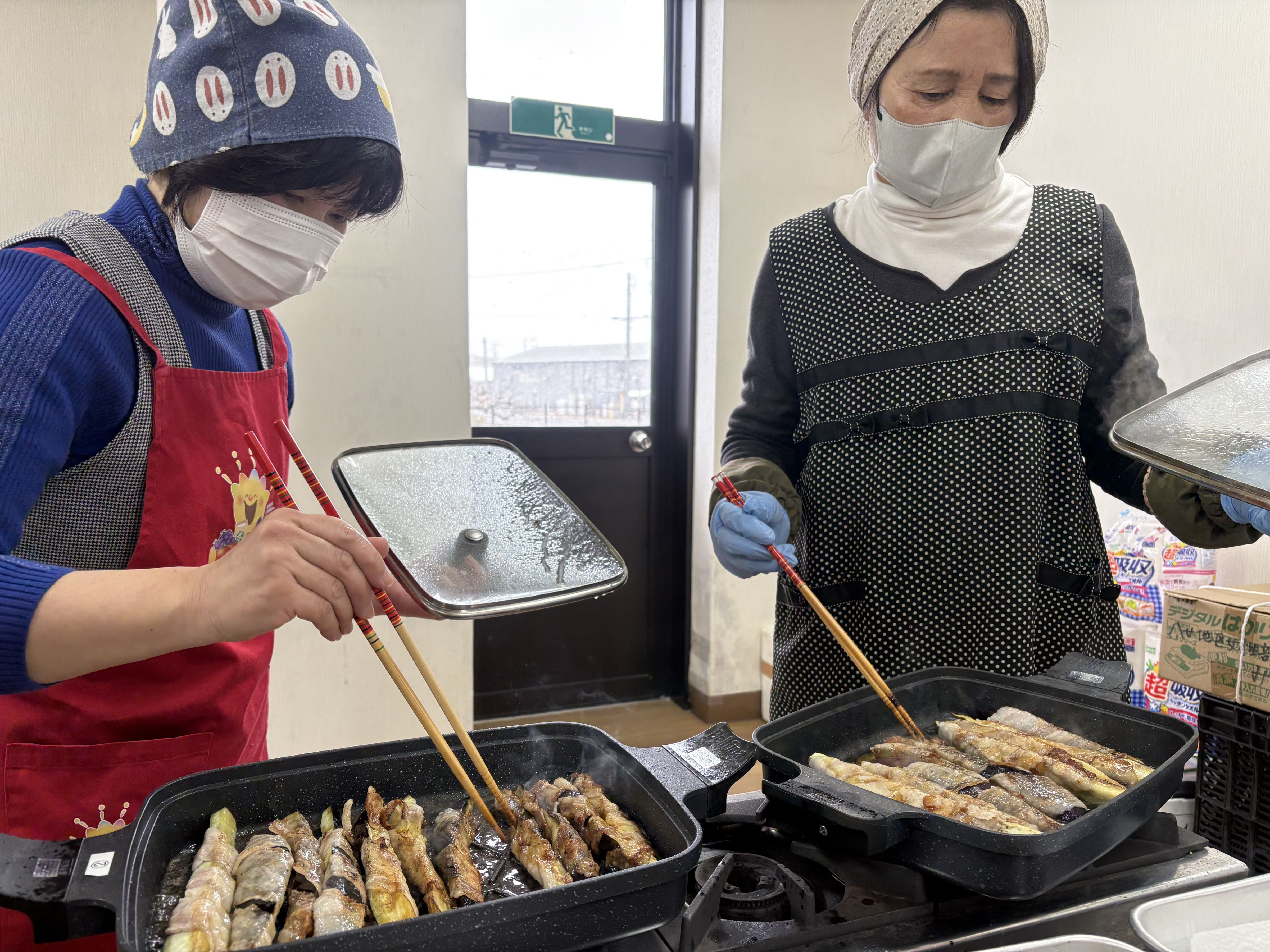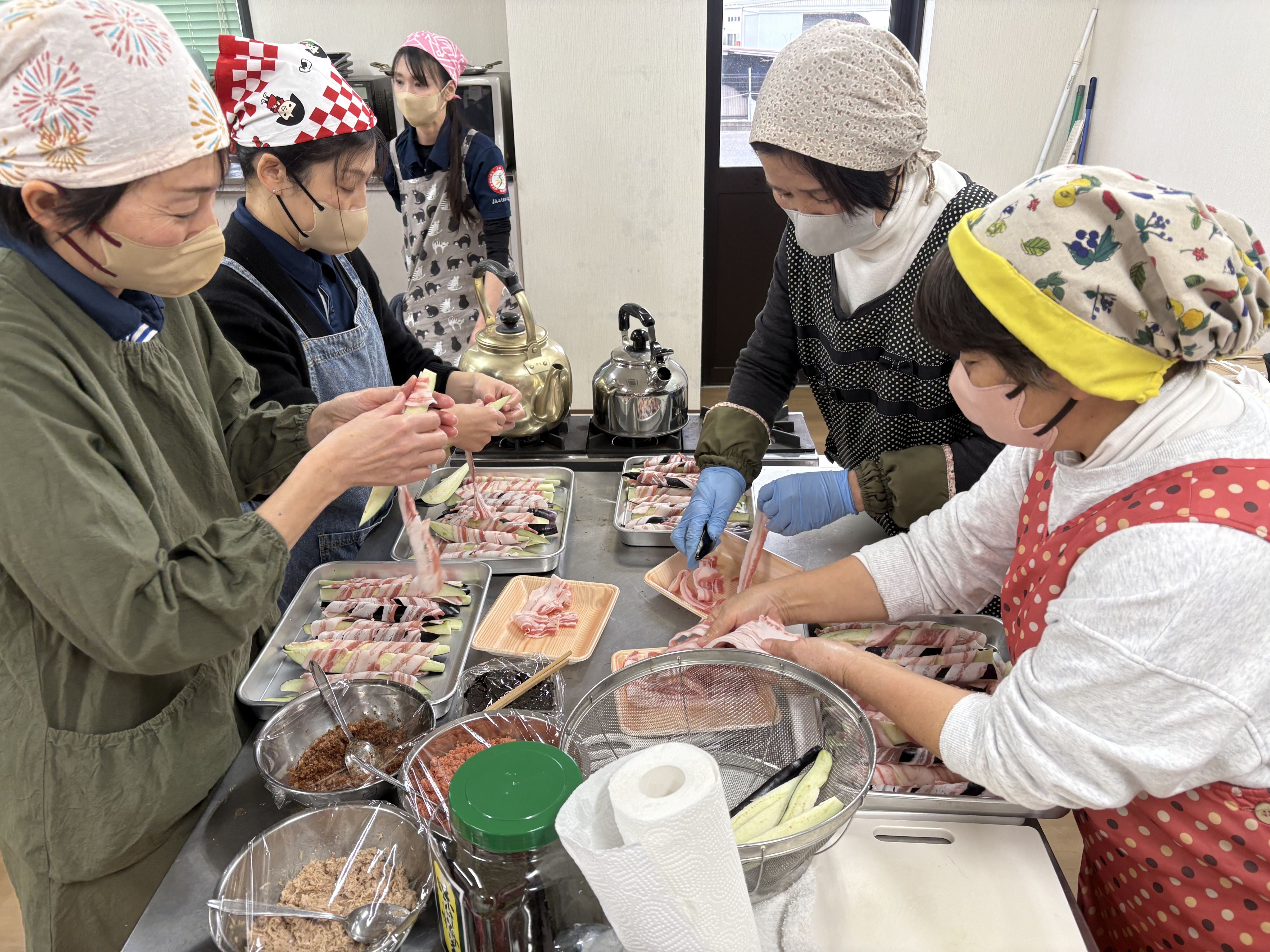 さらに女性部の皆さんが準備したなすの豚肉巻きと炊き立てのご飯と共に試食!皆さんおいしそうに食べていました。