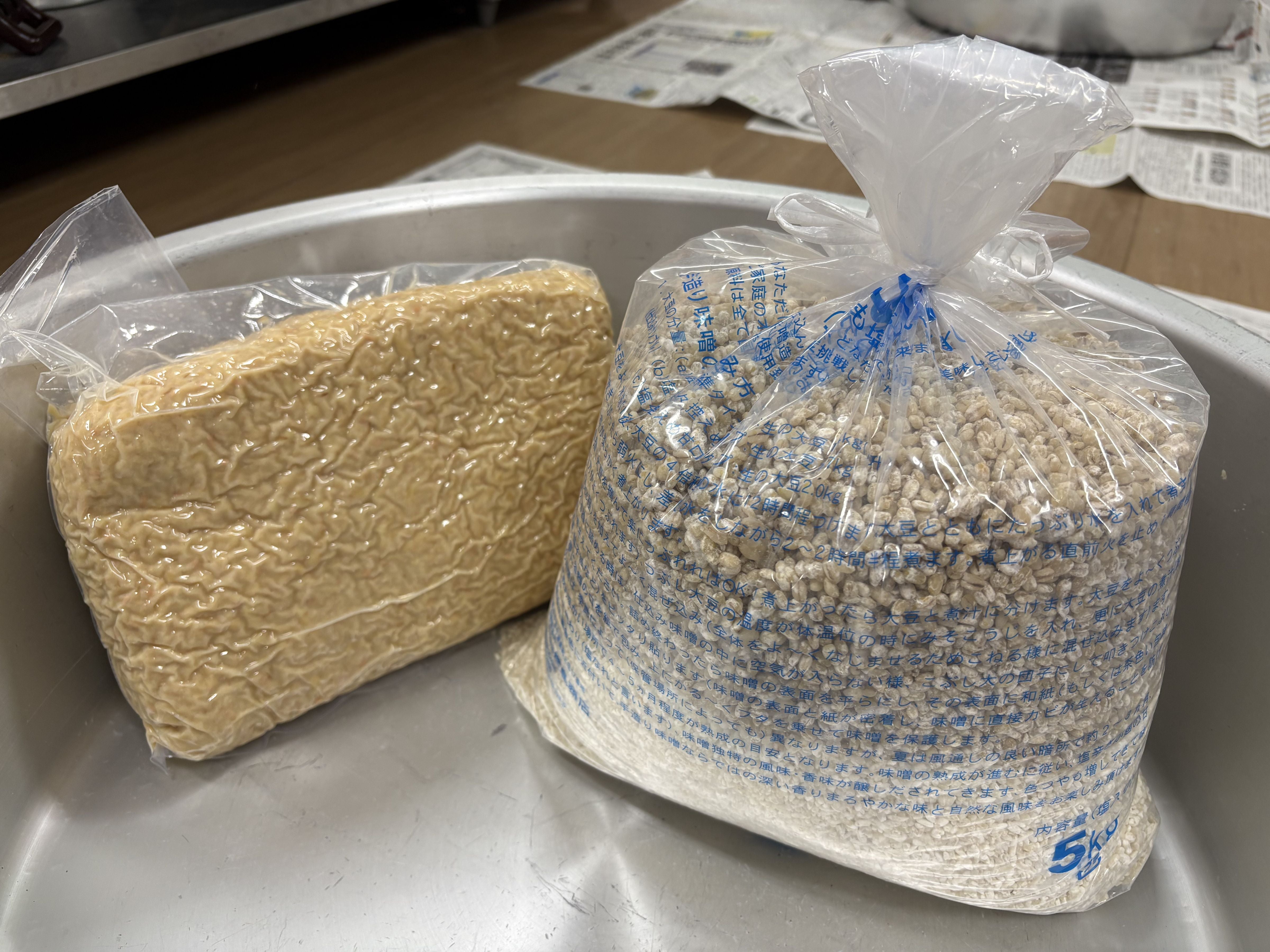 そして、大豆と麹が混ぜ合わさったら40度のお湯を入れて、耳たぶくらいの硬さになるまで