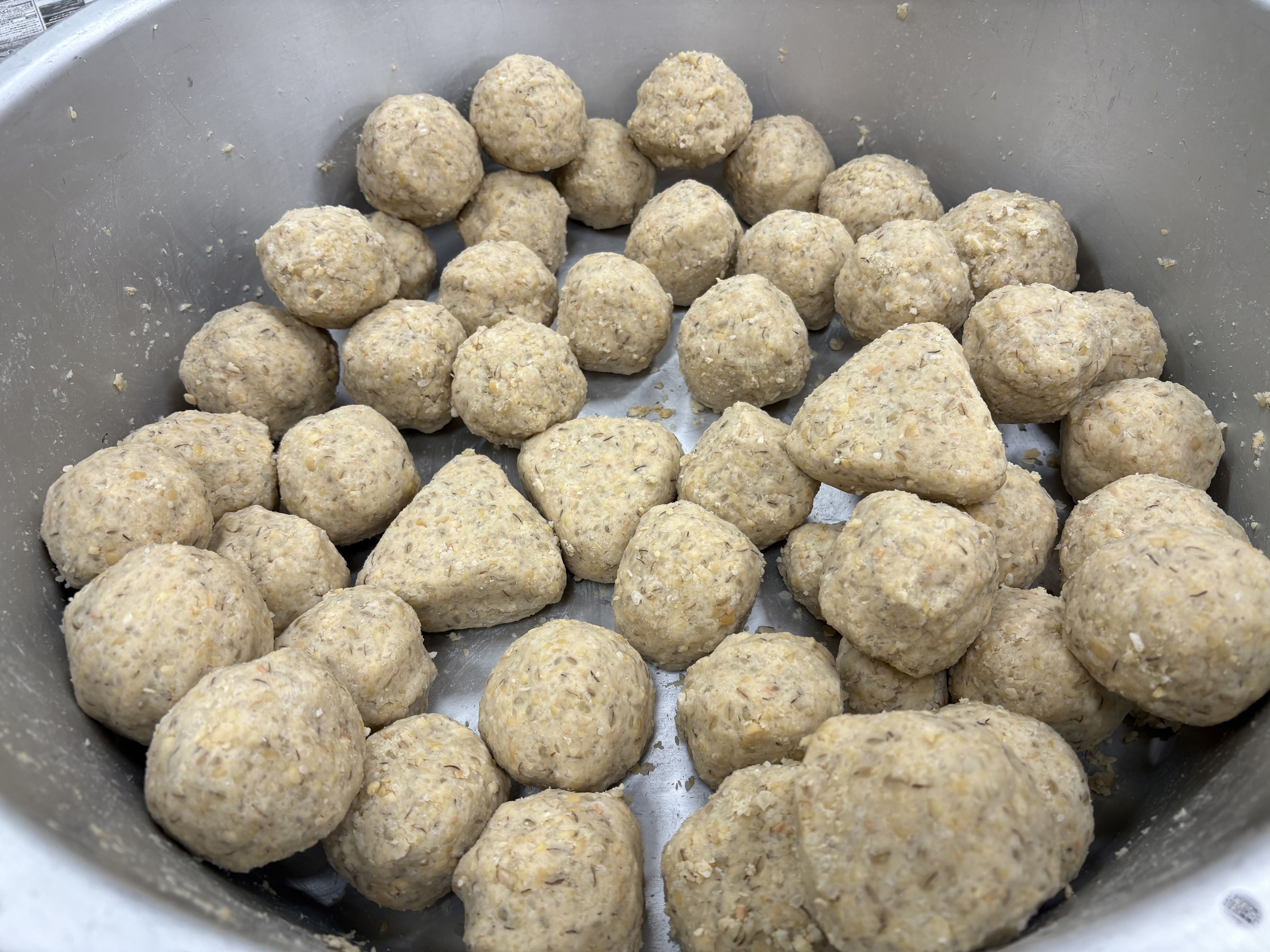そして味噌が固まったら、大きめの団子を作るように手でギュッギュッと丸め固めます。