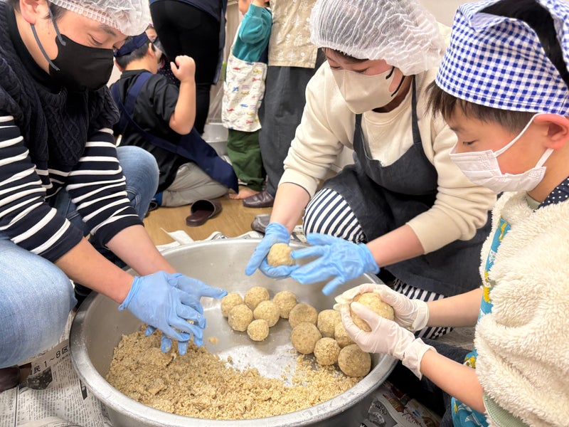 その丸めた味噌を各自持ち帰って数ヶ月熟成させて食べてもらうそうです。
