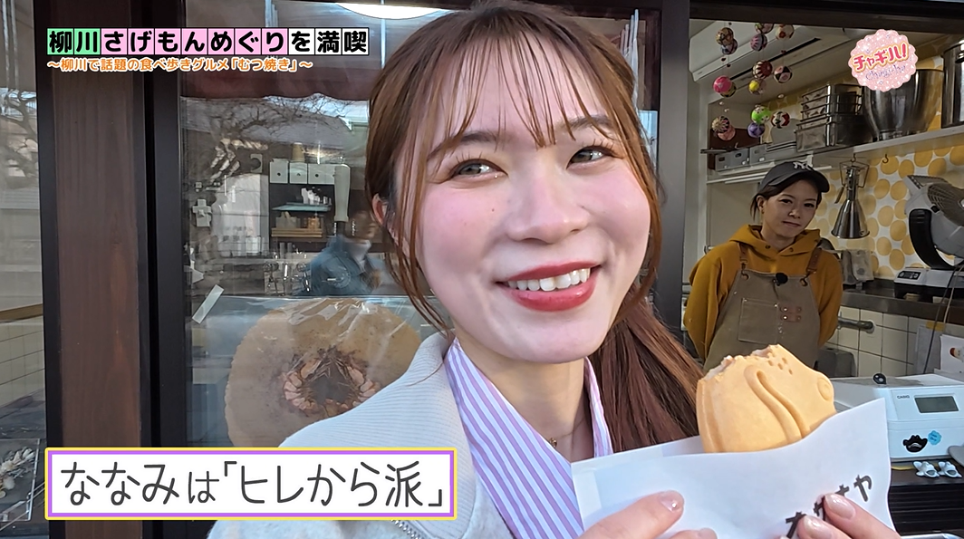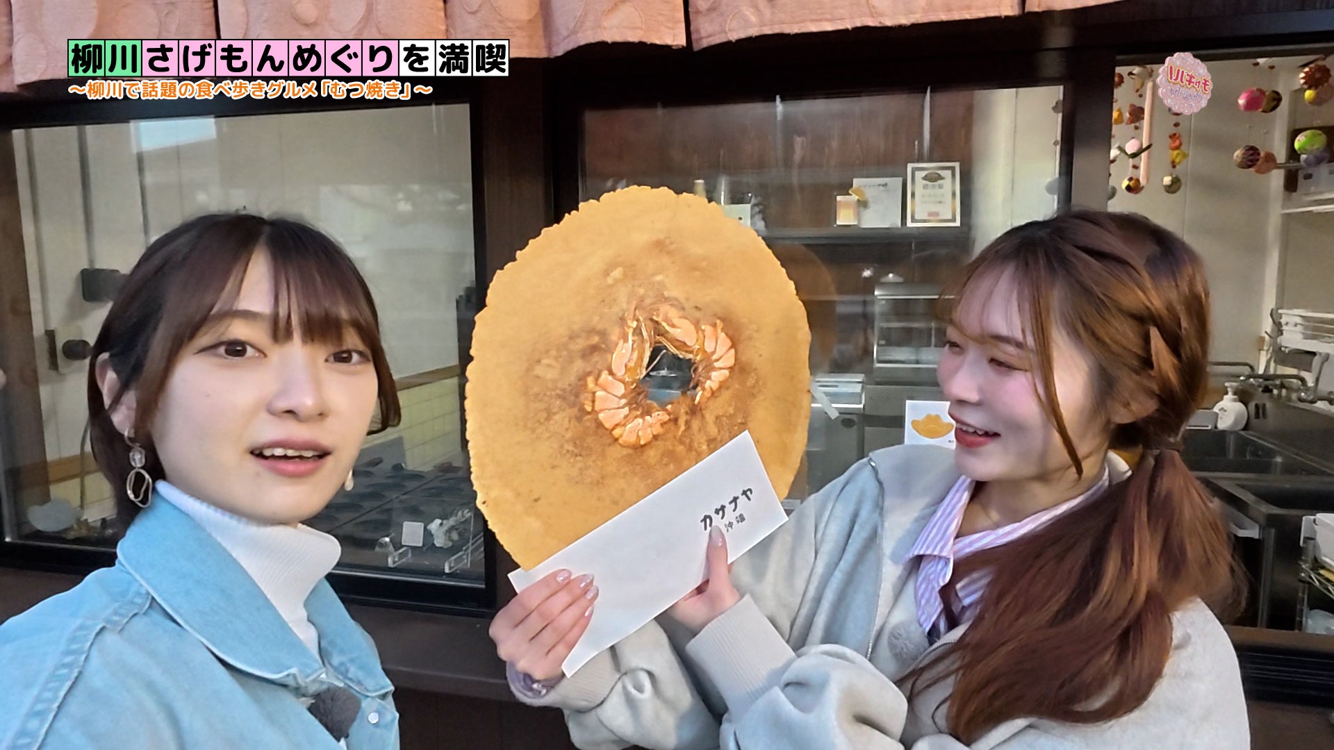「さげもんめぐり」が開催中の柳川市を訪れている三角英恵とつるたななみの2人が話題の食べ歩きグルメを求めて立ち寄ったのは、沖端町の柳川市観光情報センターの隣りにある「カサナヤ沖端」です。