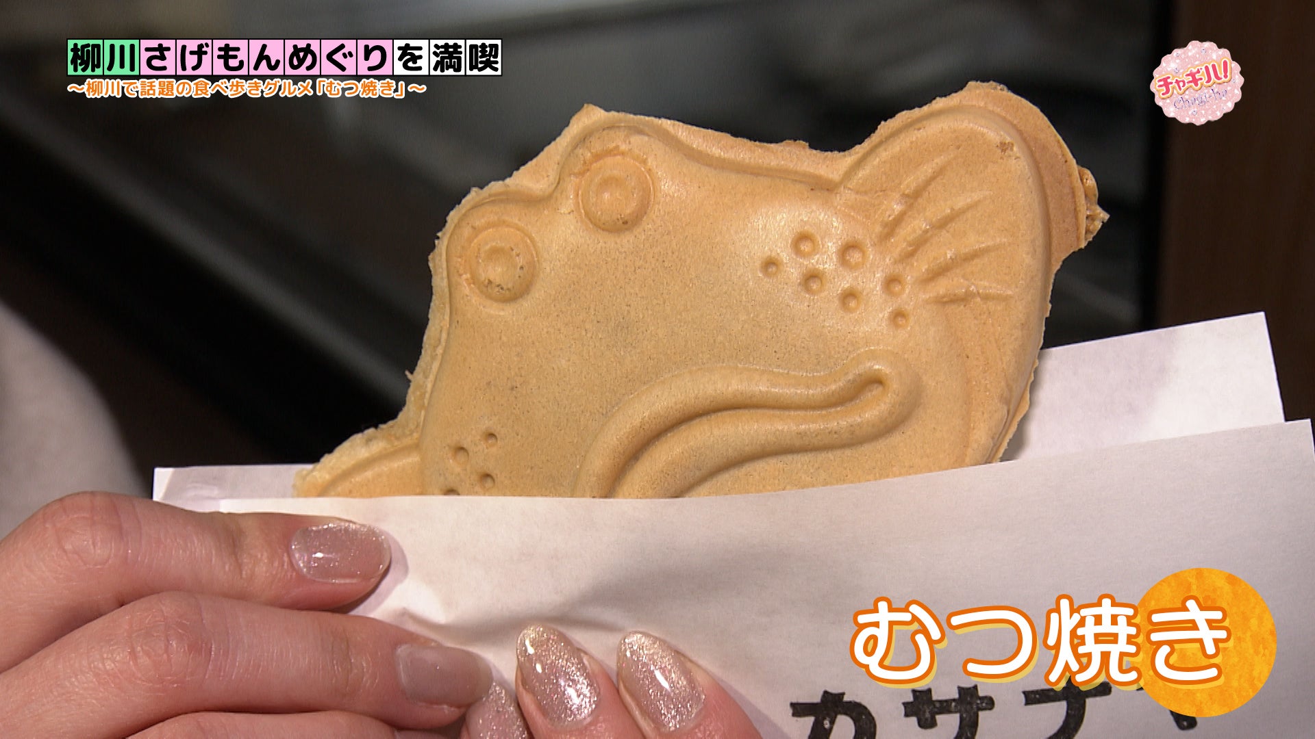 有明海の干潟で生息するムツゴロウの顔をかたどった「むつ焼き」は、ハム&マヨ、あんこ、カスタード、栗ごろごろ餡の4種類。焼きたてのアツアツでいただきます。