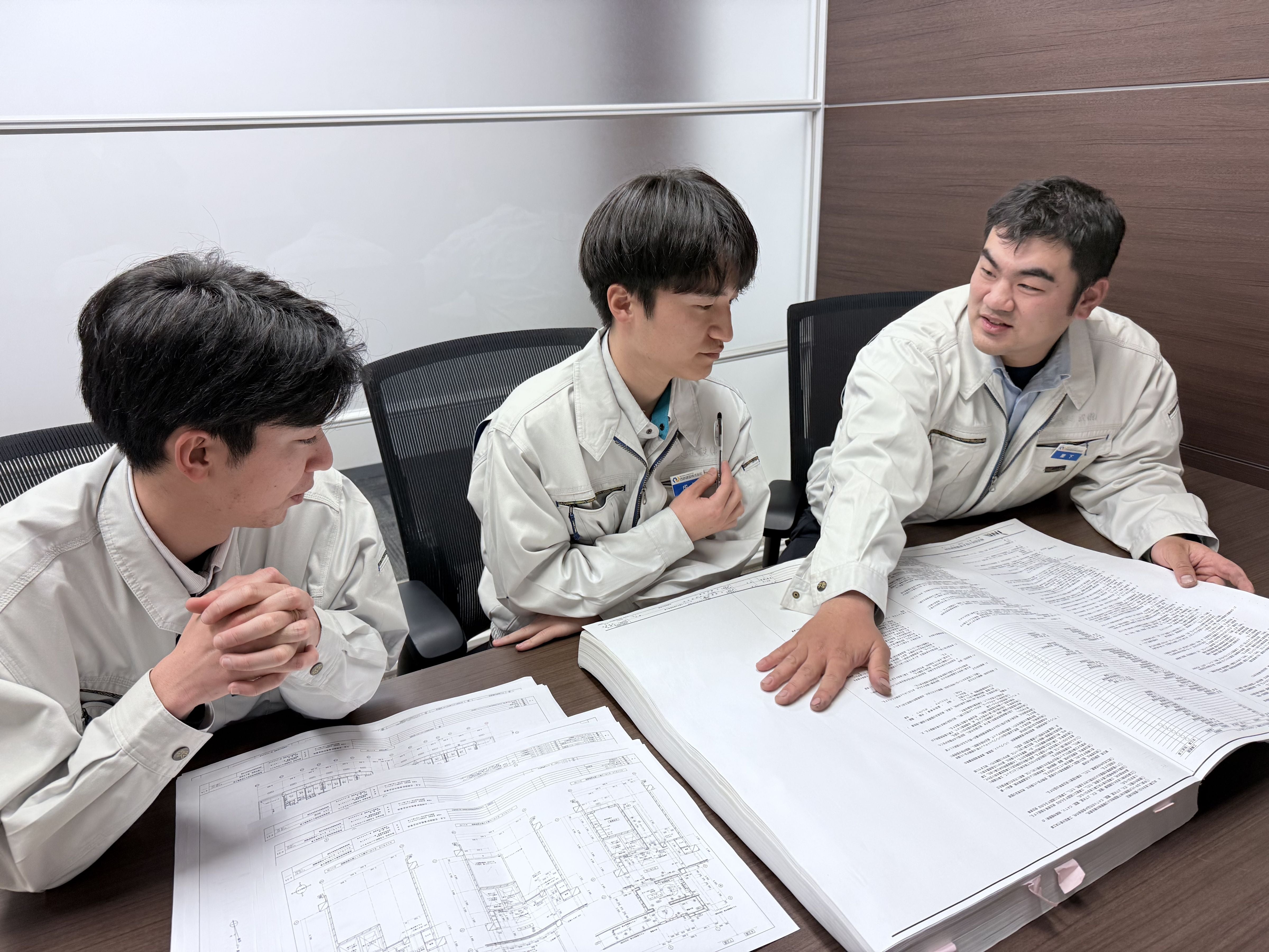 例えば、大量の資材が作業の邪魔にならないよう、事前に入念な打ち合わせを行って現場の動線を確保するのも重要な「現場管理」の一つ。また、設計図を元に、職人さんが実際に作業を進めるための「施工図」を引くこともあります。 私の立ち位置は、設計上の「理想」を、職人さんの手で「現実」にするための伝達役だと思っています。