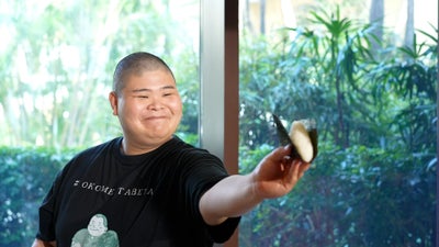 コメのおいしさが最も伝わるように作るのは、塩のみで味付けし、ノリを巻いただけのシンプルなおにぎり。最大の特徴は、そのにぎり方で、炊きたて熱々を優しく包み込む。そんな太郎さんは去年、自分の店を出すことになった。選んだのは福岡県八女市。おにぎりと結びつきが強い八女茶の存在、そして筑後地区の食材に惹かれての決断だった。